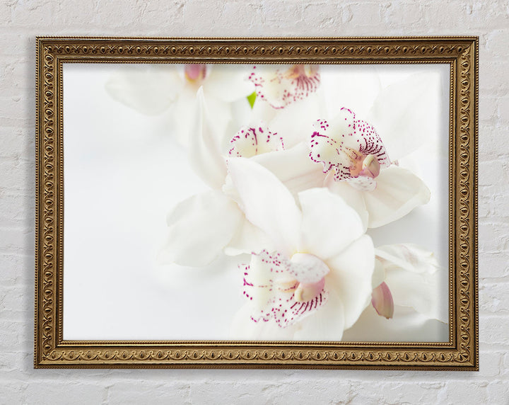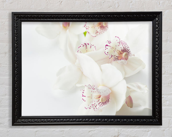 Gerahmter Druck „Orchid Bliss“, erhältlich in mehreren Rahmenfarben. Fertig zum Aufhängen aus der Schachtel und handgefertigt im Vereinigten Königreich.