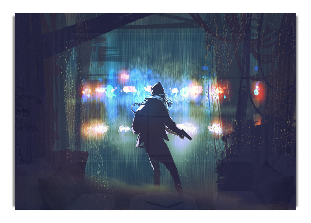Acryldruck „Out To Fight Justice“, UV-gedruckt auf 5 mm dickes Acrylglas. Wird mit allem geliefert, was Sie zum Aufhängen an die Wand brauchen.