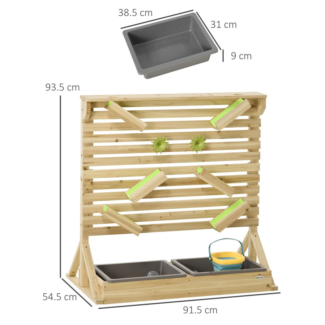 Transform your outdoor space into a mini beach, thanks to this Outsunny water-running playset. With two sections for sand and water children will enjoy creating waterfalls with the funnel, and sandcastles with the spatula and spoon. Overall, there are 18 toy accessories of the wooden sandpit, giving children different activates each time. It's a fun way to encourage problem-solving and creativity, allowing children to enter a magical world of their own.