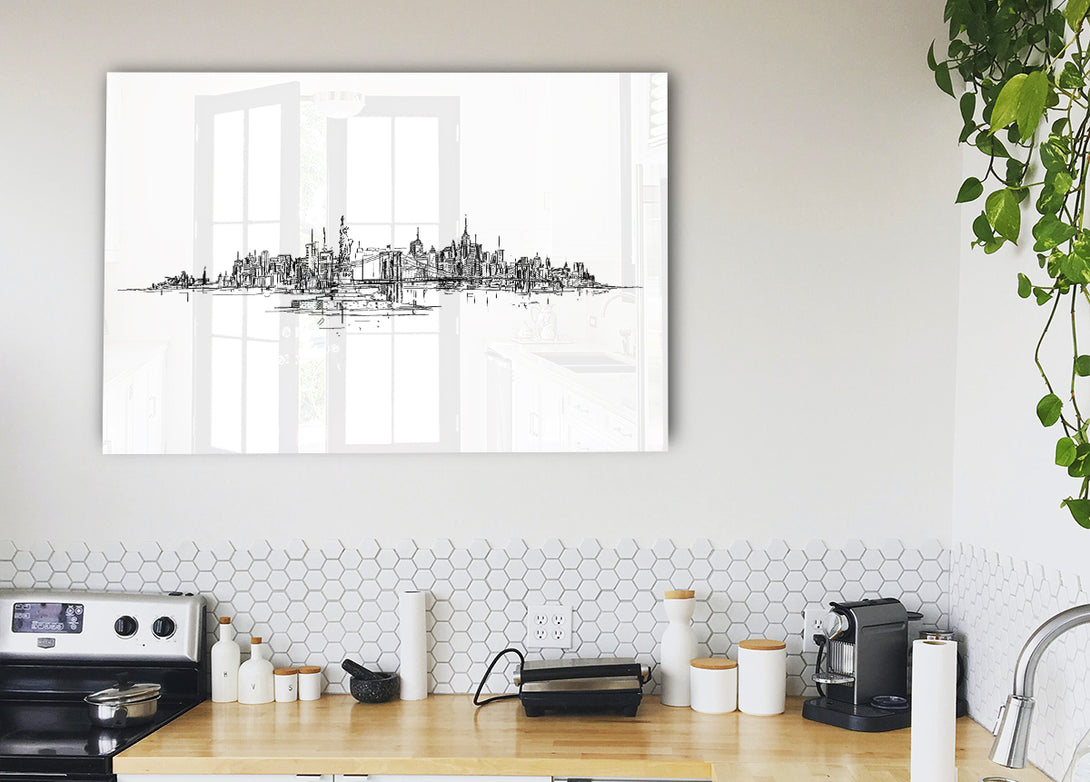 Acryldruck „Outline Of The Big Apple“, UV-Druck auf 5 mm dickes Acrylglas. Wird mit allem geliefert, was Sie zum Aufhängen an die Wand benötigen.