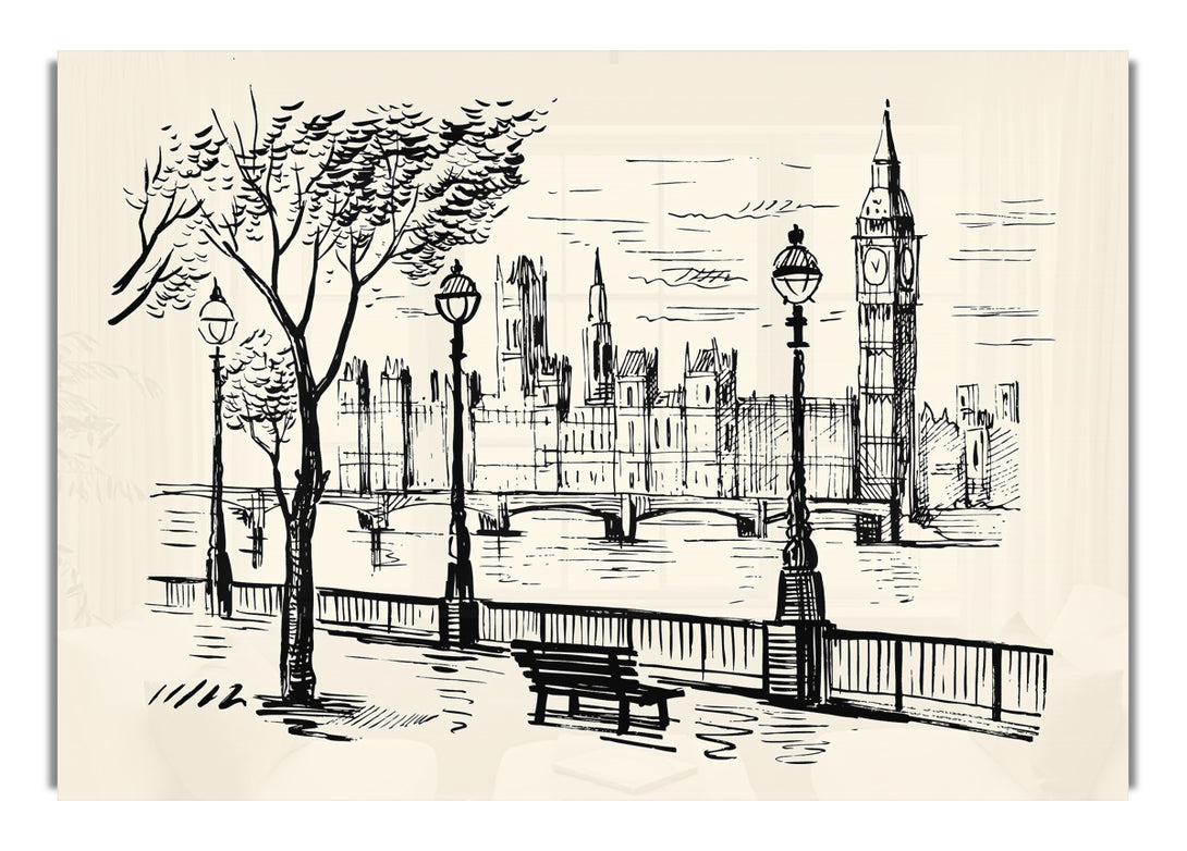 Acryldruck „Umriss des Houses of Parliament“, UV-Druck auf 5 mm dickes Acrylglas. Wird mit allem geliefert, was Sie zum Aufhängen an die Wand benötigen.