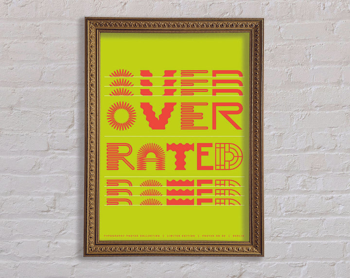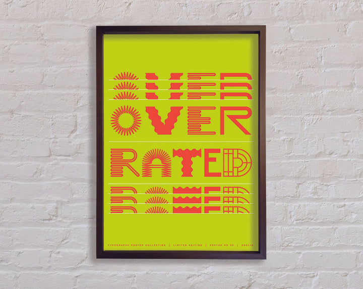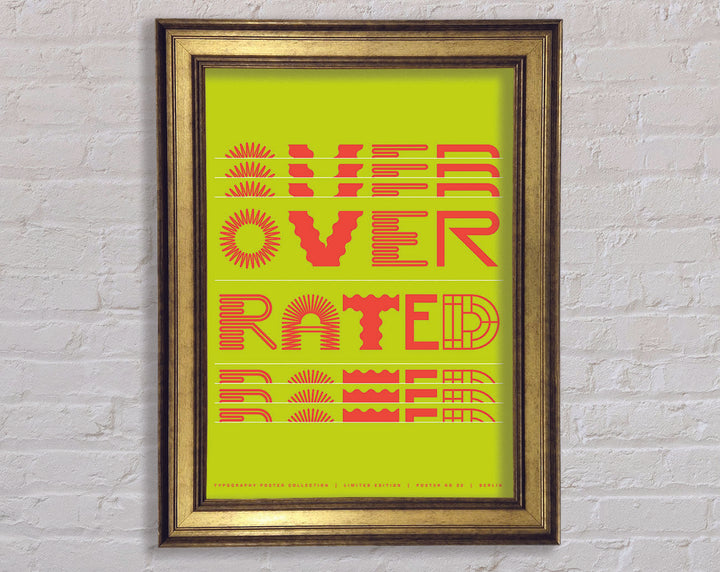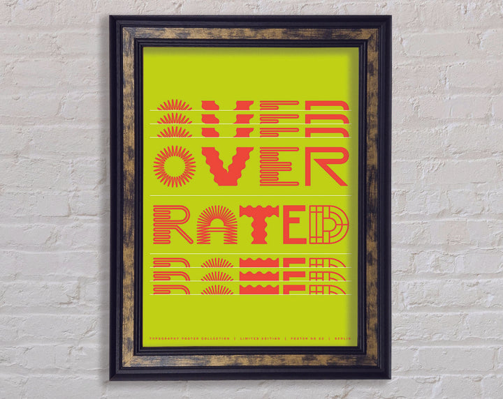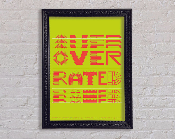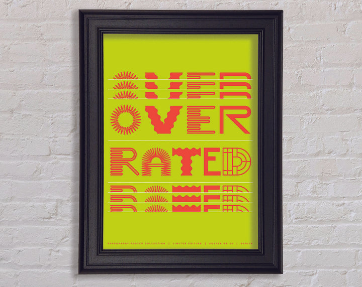Introducing the Over Rated Framed Print, a stunning piece of framed art perfect for any room. This artwork comes in six different sizes, ranging from small to oversized, allowing you to find the perfect fit for your space. Available in a variety of colors, you can easily match it with your existing decor. Each print is handmade with care in the United Kingdom, ensuring top-notch quality and craftsmanship. Ready to hang right out of the box, it’s convenient and hassle-free to display. Add a touch of elegance and personality to your home or office with this unique and eye-catching framed art.