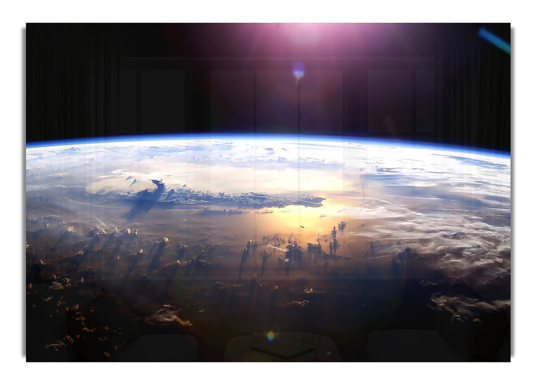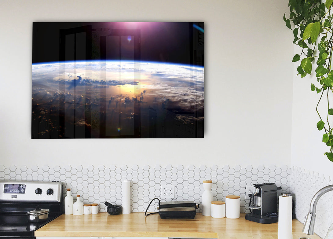 Acryldruck „Pazifischer Ozean aus dem All“, UV-gedruckt auf 5 mm dickes Acrylglas. Wird mit allem geliefert, was Sie zum Aufhängen an die Wand brauchen.