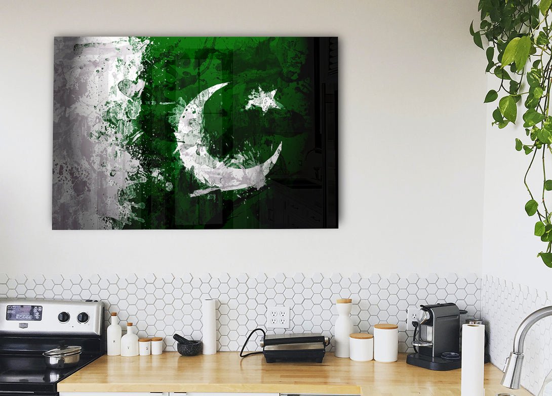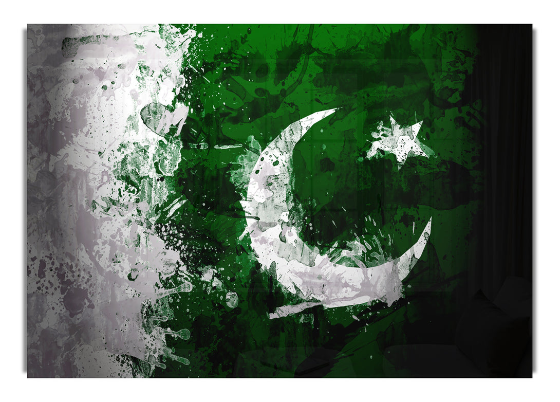Acryldruck mit pakistanischer Flagge im Grunge-Stil, UV-Druck auf 5 mm dickes Acrylglas. Wird mit allem geliefert, was Sie zum Aufhängen an die Wand benötigen.