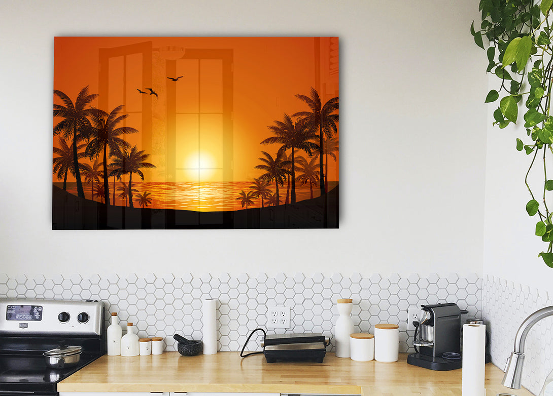 Acryldruck „Palm Tree Delight“, UV-gedruckt auf 5 mm dickes Acrylglas. Wird mit allem geliefert, was Sie zum Aufhängen an die Wand brauchen.