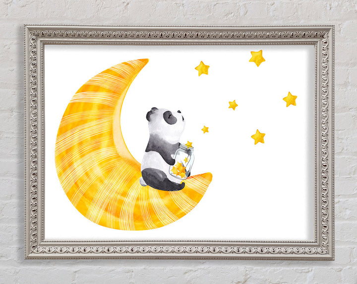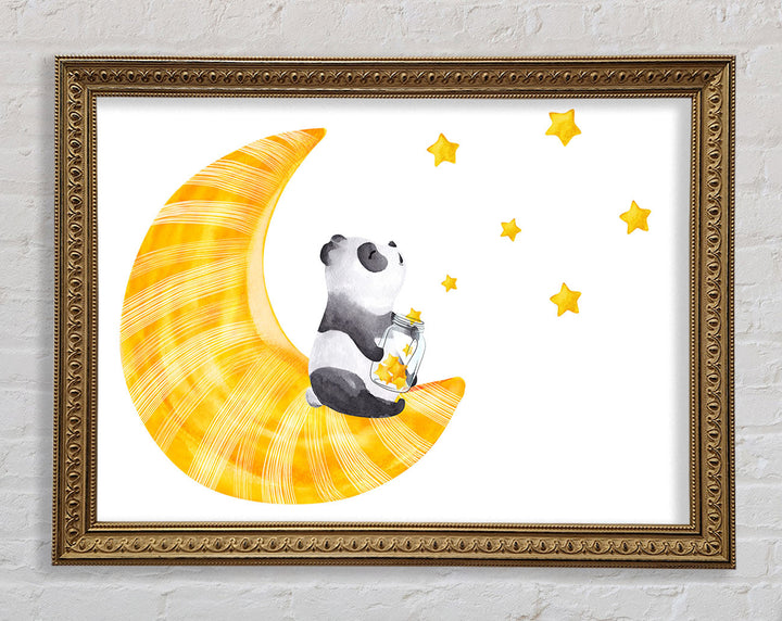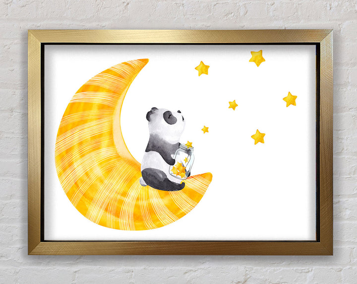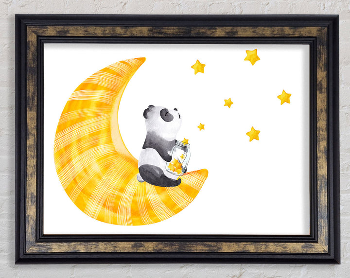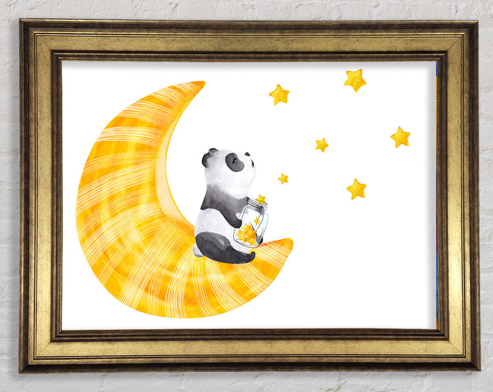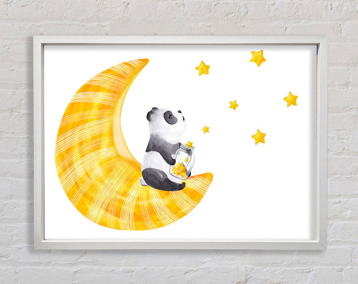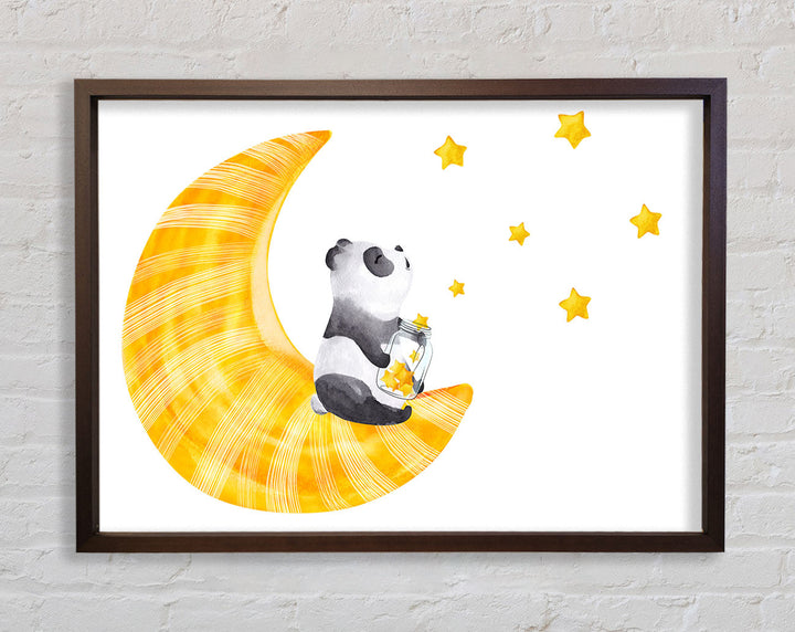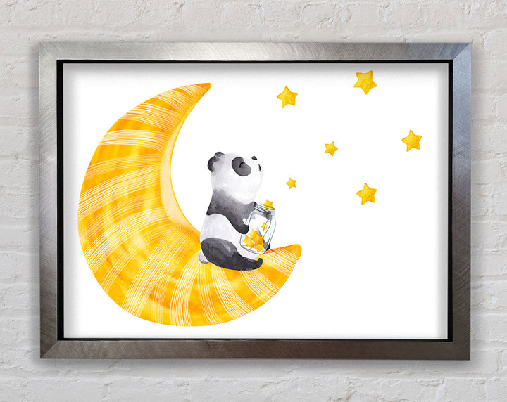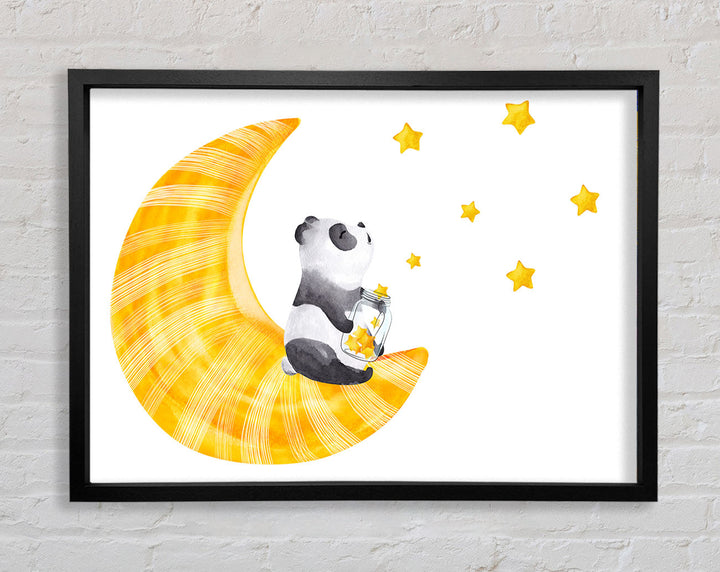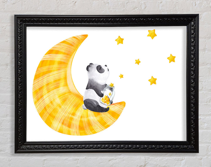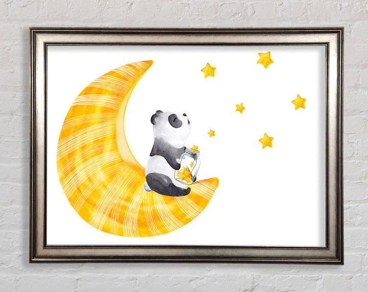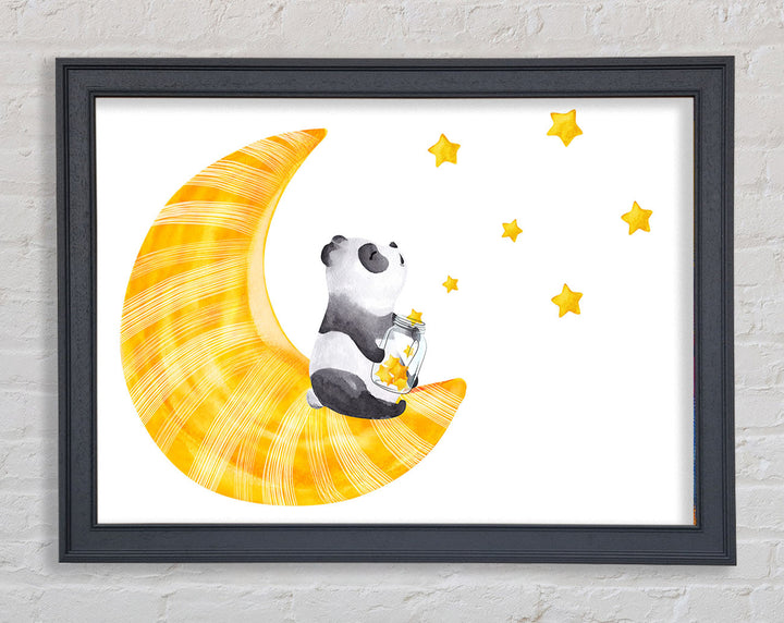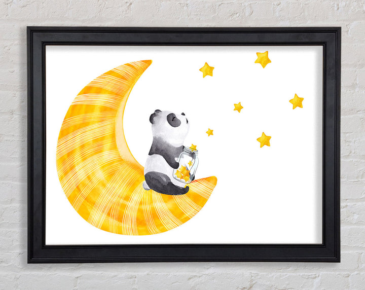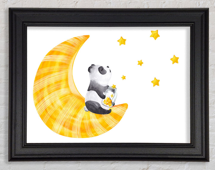 Gerahmter Druck „Panda Moon“, erhältlich in mehreren Rahmenfarben. Fertig zum Aufhängen aus der Schachtel und handgefertigt im Vereinigten Königreich.
