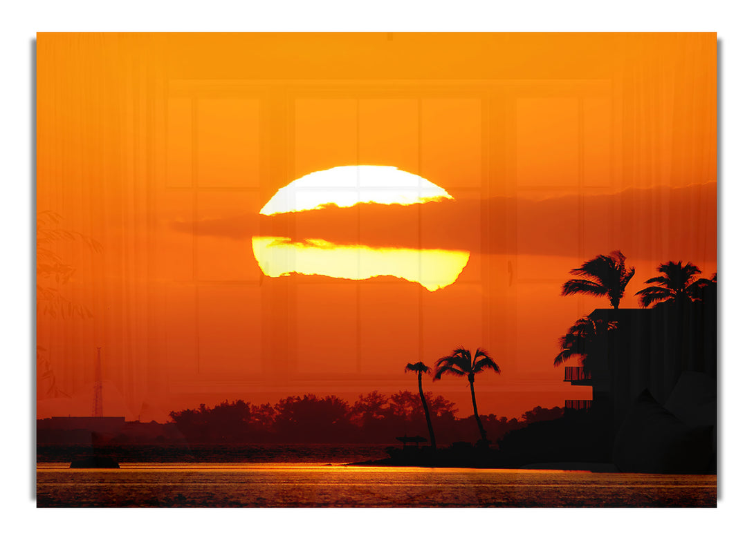 Acryldruck „Paradise Beach House“, UV-gedruckt auf 5 mm dickes Acrylglas. Wird mit allem geliefert, was Sie zum Aufhängen an die Wand brauchen.
