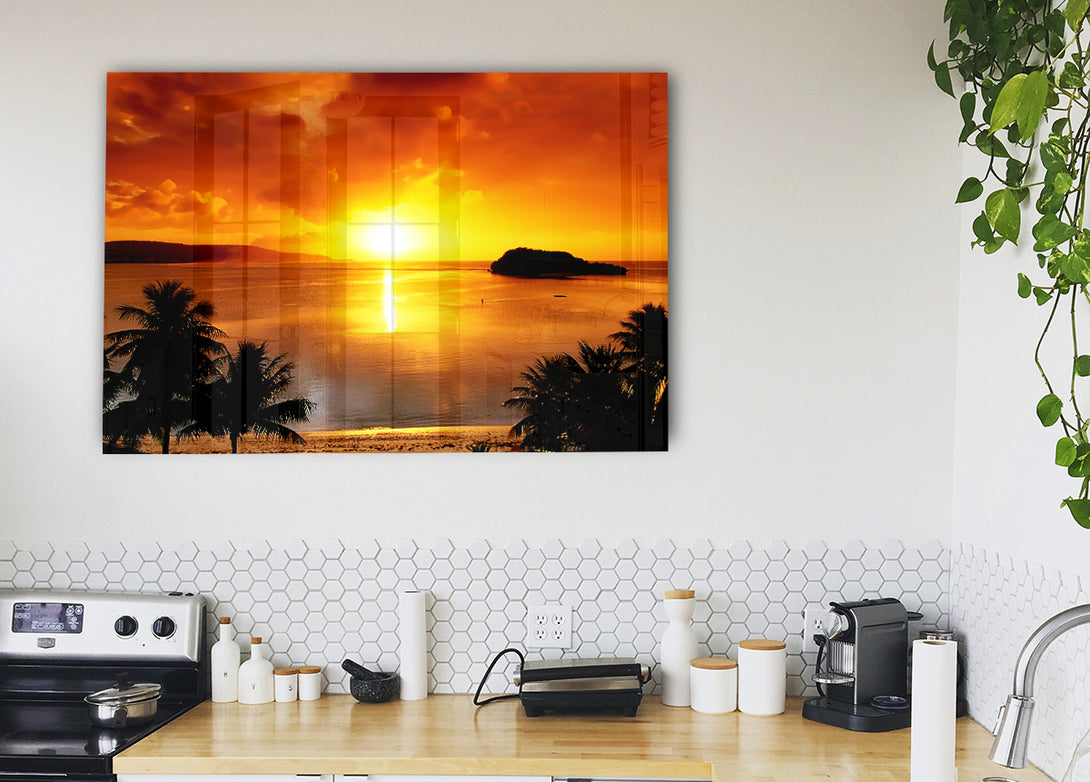 Acryldruck „Paradise Sunset“, UV-gedruckt auf 5 mm dickes Acrylglas. Wird mit allem geliefert, was Sie zum Aufhängen an die Wand brauchen.