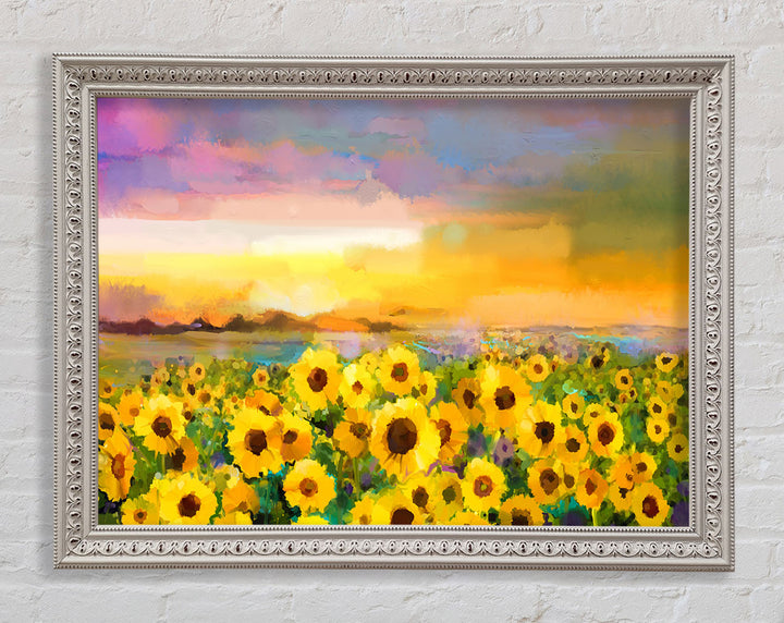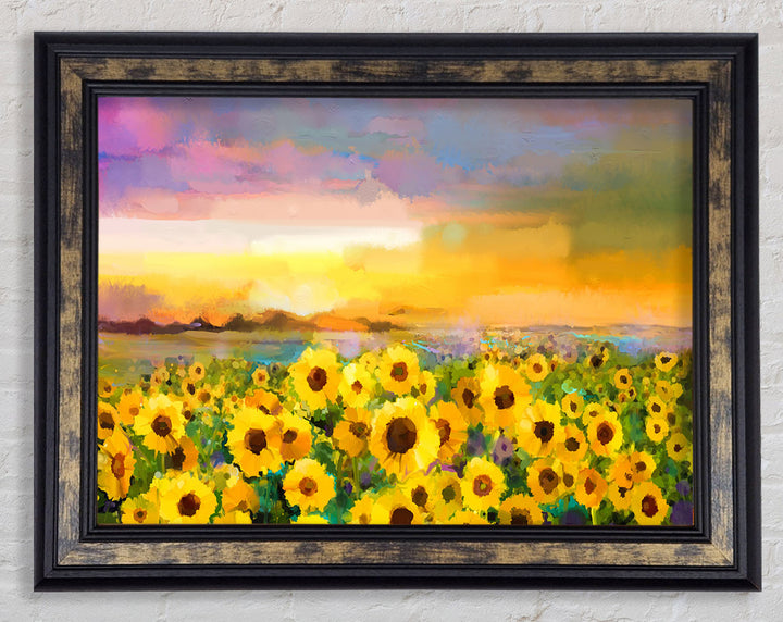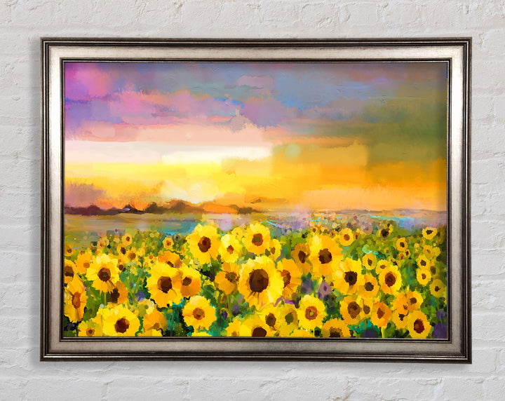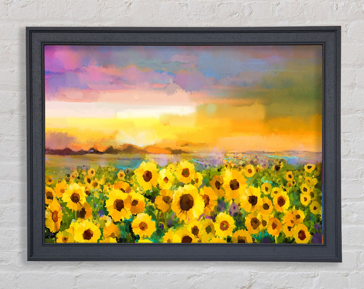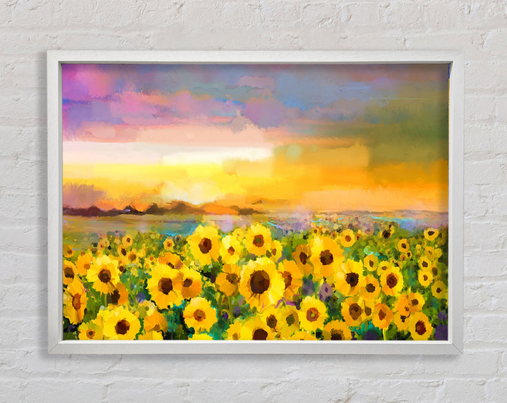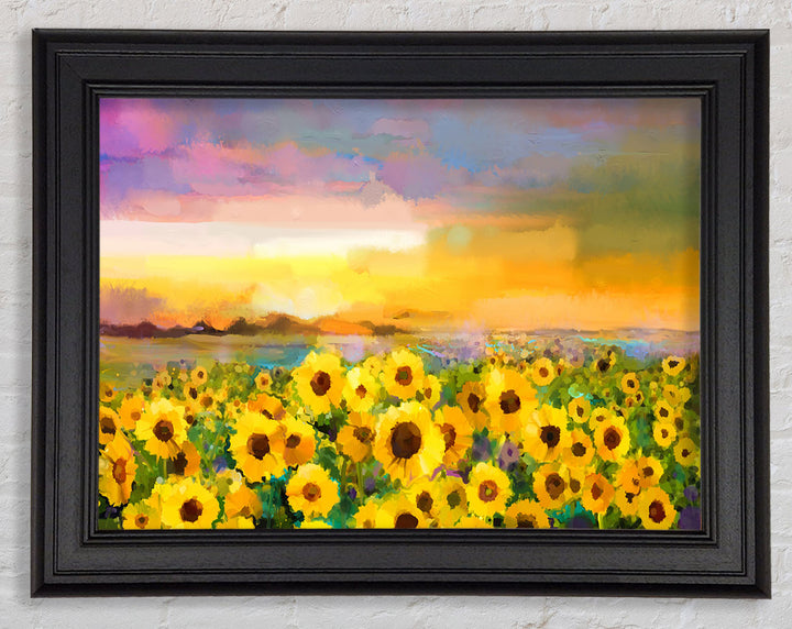 Gerahmter Druck „Sunflower Sunset“ in Pastell, in mehreren Rahmenfarben erhältlich. Fertig zum Aufhängen aus der Schachtel und handgefertigt im Vereinigten Königreich.