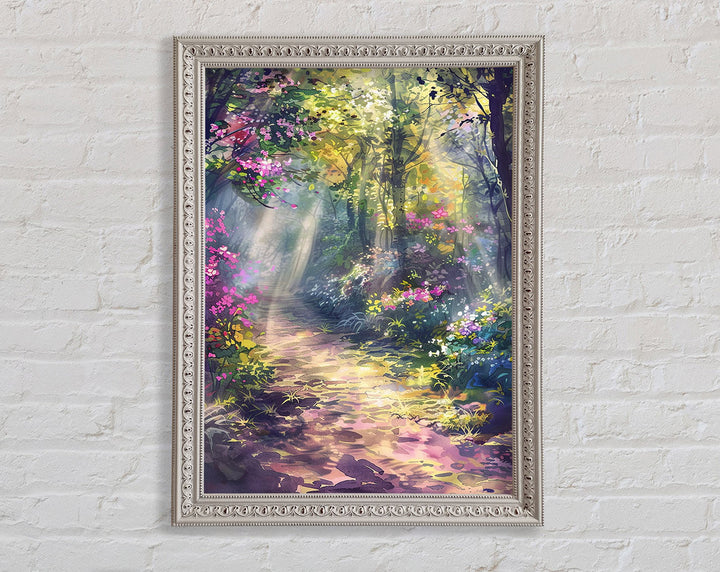 Introducing the Path Lined With Blooming Flowers Framed Print, a stunning piece of framed art that brings the beauty of nature into your home. This charming print features a serene path surrounded by vibrant, blossoming flowers, capturing the essence of a peaceful garden stroll. Available in six sizes, ranging from small to oversized, you can find the perfect fit for any space. Choose from a variety of colors to match your decor. Each print is meticulously handmade in the United Kingdom, ensuring exceptional quality and craftsmanship. Ready to hang, this framed art makes it easy to instantly transform any room into a tranquil haven. Enjoy the blend of elegance and nature with this beautiful piece today.