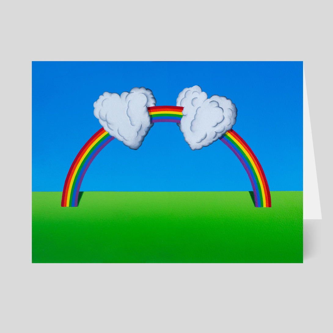 Patrick held his first solo show in 1961 at the Portal Gallery, London. It was the first one-man show by a Pop Artist, though they were not even called that then. A few years later, Hughes made two seminal reverse perspective works, Infinity and Sticking-out Room. In the 1970s Hughes’ name became synonymous with rainbow paintings, which also became very popular as prints and as postcards; people enjoyed them as decoration, but for Hughes the rainbow represented a solid experience.