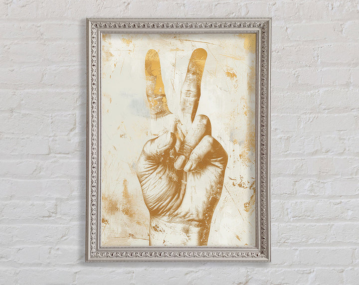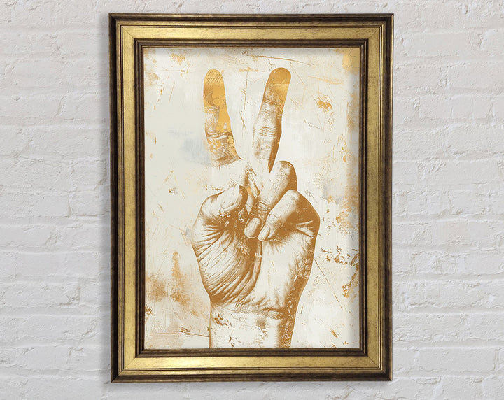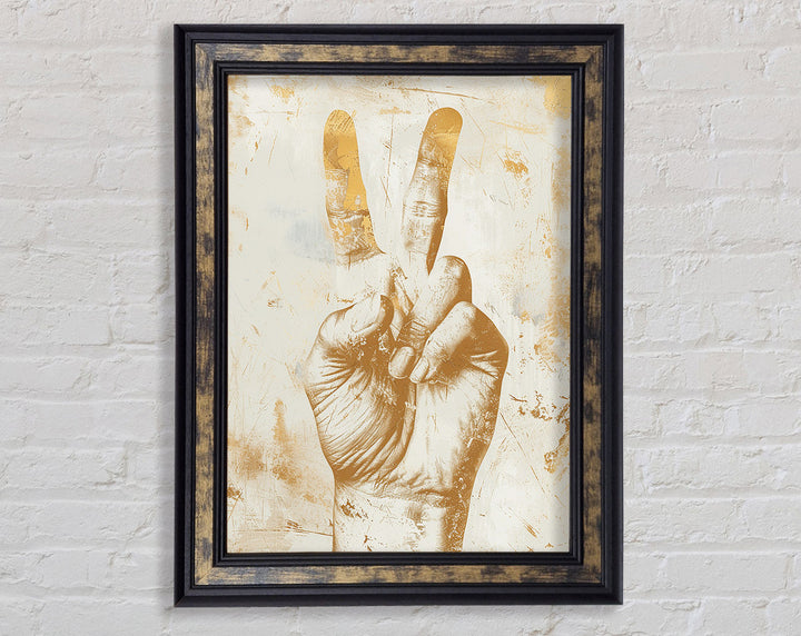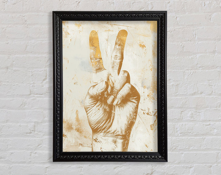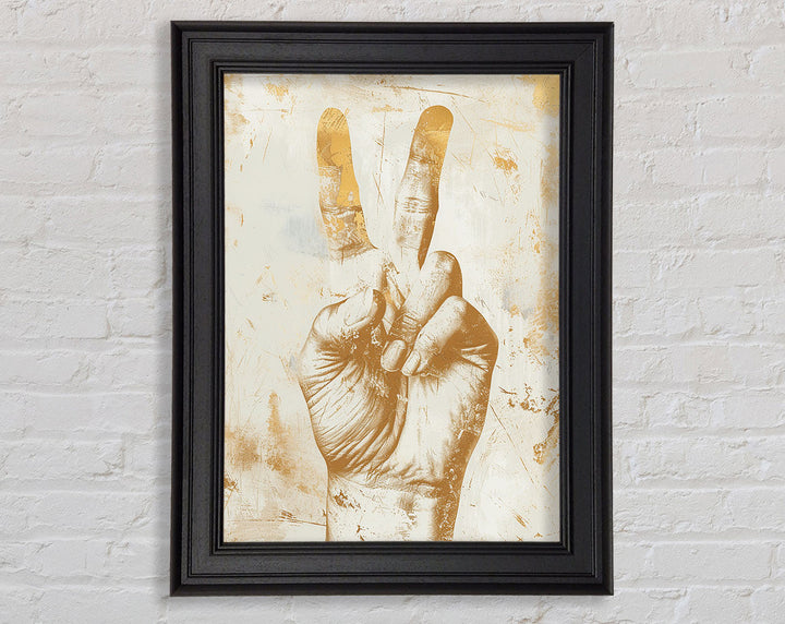 Introducing the Peace Gold Fingers Framed Print, a stunning piece of framed art that adds a touch of elegance to any space. This beautiful print features a striking design of gold fingers forming a peace sign, symbolizing harmony and positivity. Available in six sizes, from small to oversized, you can find the perfect fit for any room. Choose from a variety of colors to match your decor and enjoy the convenience of a ready-to-hang piece. Each item is handmade in the United Kingdom, ensuring top-notch craftsmanship and quality. Elevate your home or office with this unique and inspiring framed art today!