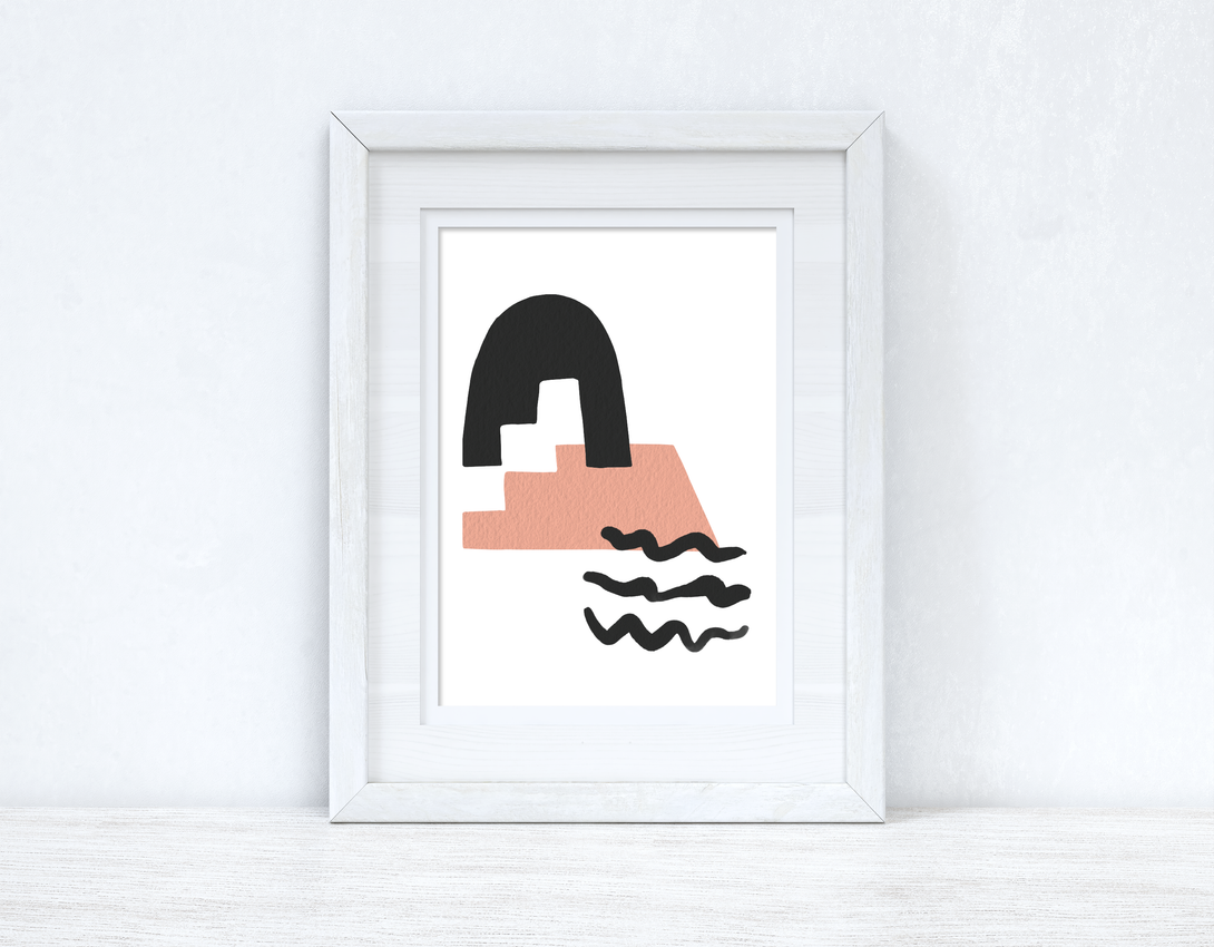 Peach Pink & Black Abstract 3 Colour Shapes Home Wall Decor Print
