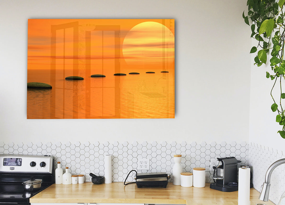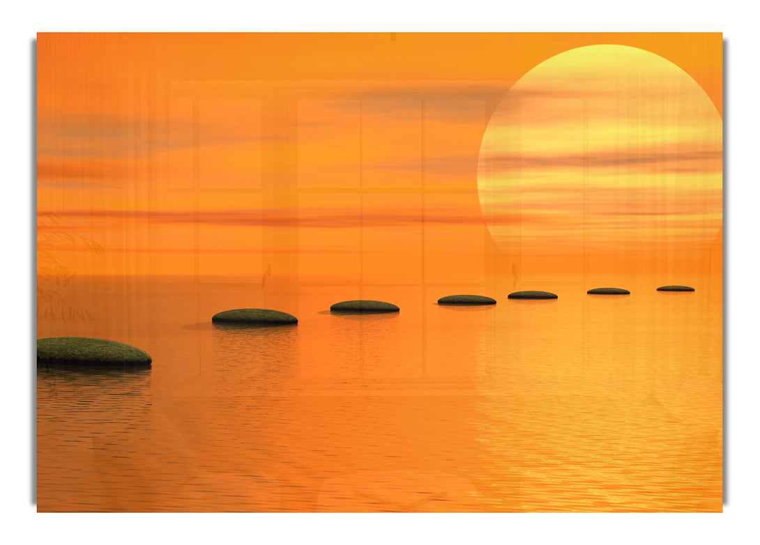 Acryldruck „Pebbles To The Tranquil Sun“, UV-Druck auf 5 mm dickes Acrylglas. Wird mit allem geliefert, was Sie zum Aufhängen an die Wand benötigen.