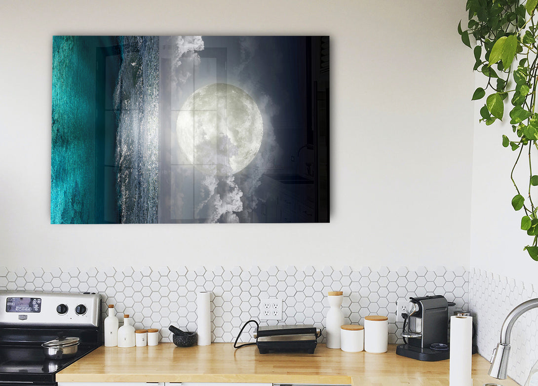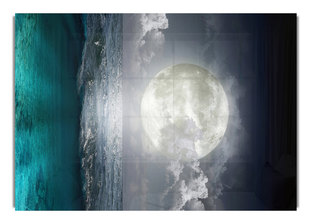Perfekter Moon Ocean-Acryldruck, UV-gedruckt auf 5 mm dickes Acrylglas. Wird mit allem geliefert, was Sie zum Aufhängen an Ihre Wand benötigen.