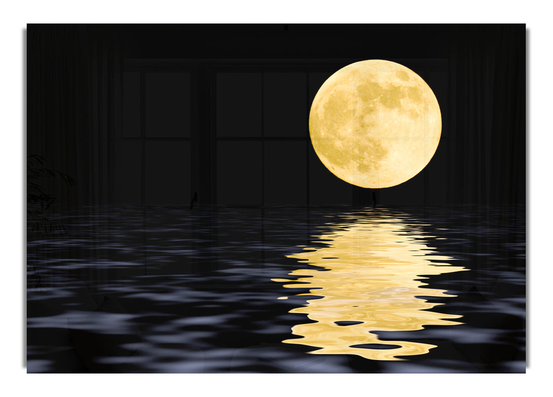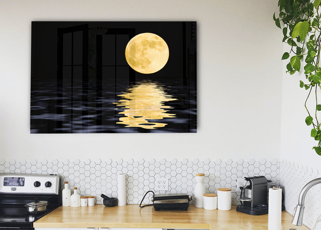 Acryldruck „Perfect Moon Reflection“, UV-gedruckt auf 5 mm dickes Acrylglas. Wird mit allem geliefert, was Sie zum Aufhängen an die Wand brauchen.