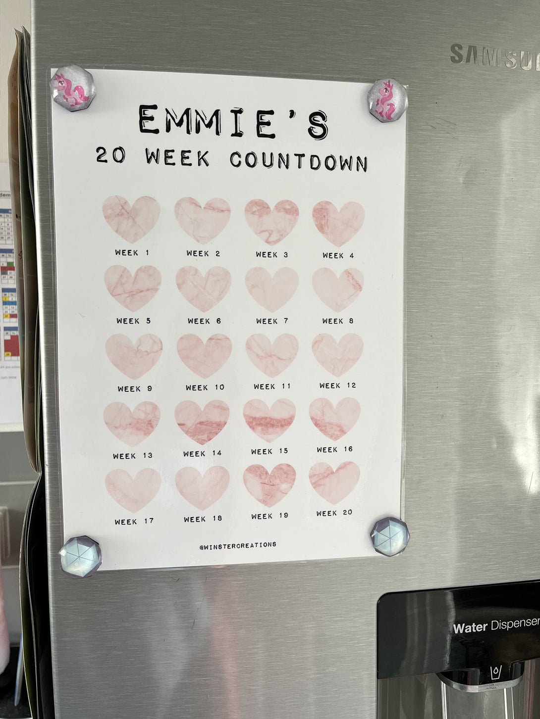 Personalised A4 Any Name 20 Week Marble Heart Countdown Weight Loss Chart Tracker Print - Laminated With Drywipe Pen