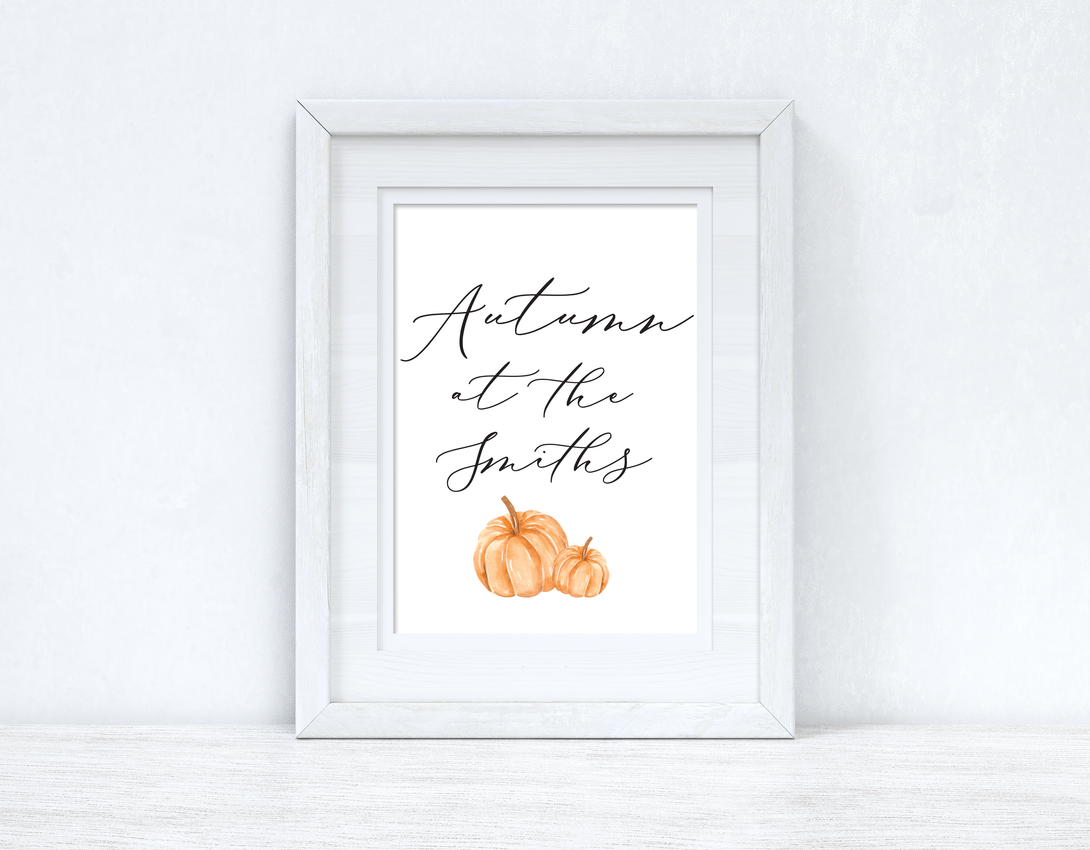 Personalised Autumn At The Surname Pumpkin Autumn Seasonal Wall Home Decor Print