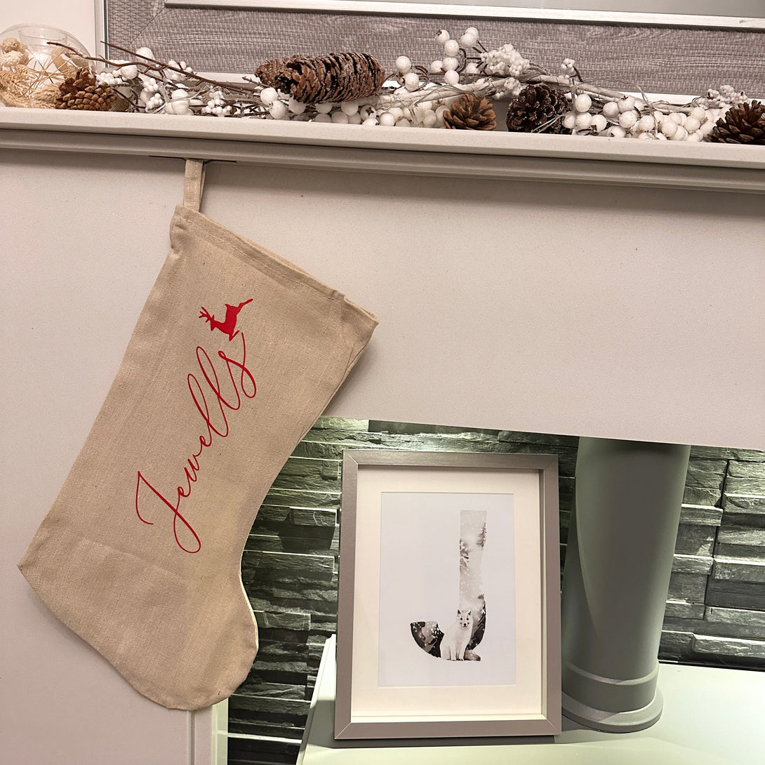 Personalised Name Script Font Natural Hessian Christmas Stocking
