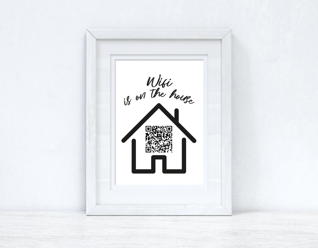 Personalised Wifi Is On The House Silhouette Wifi QR Scan Home Wall Decor Print