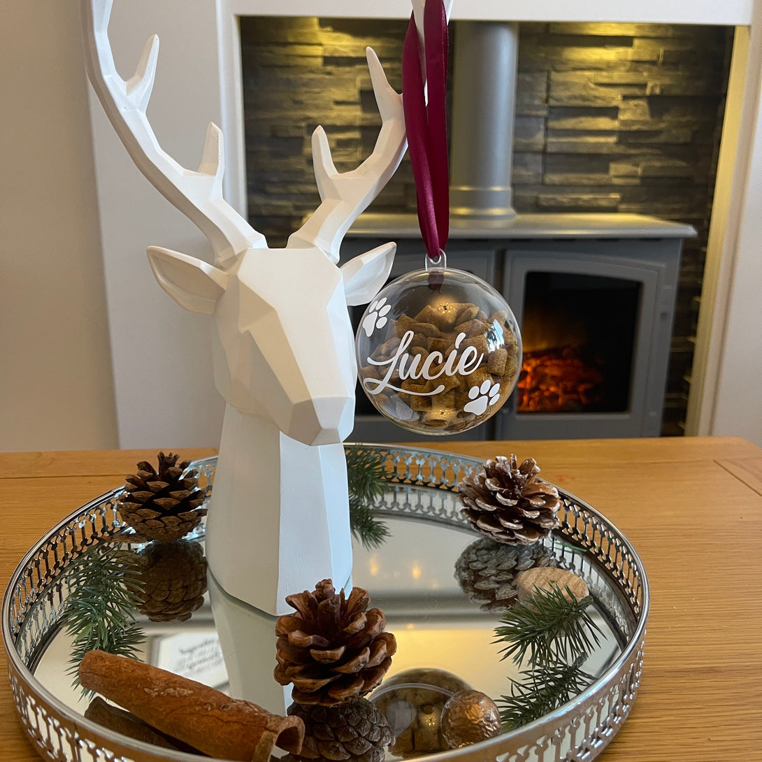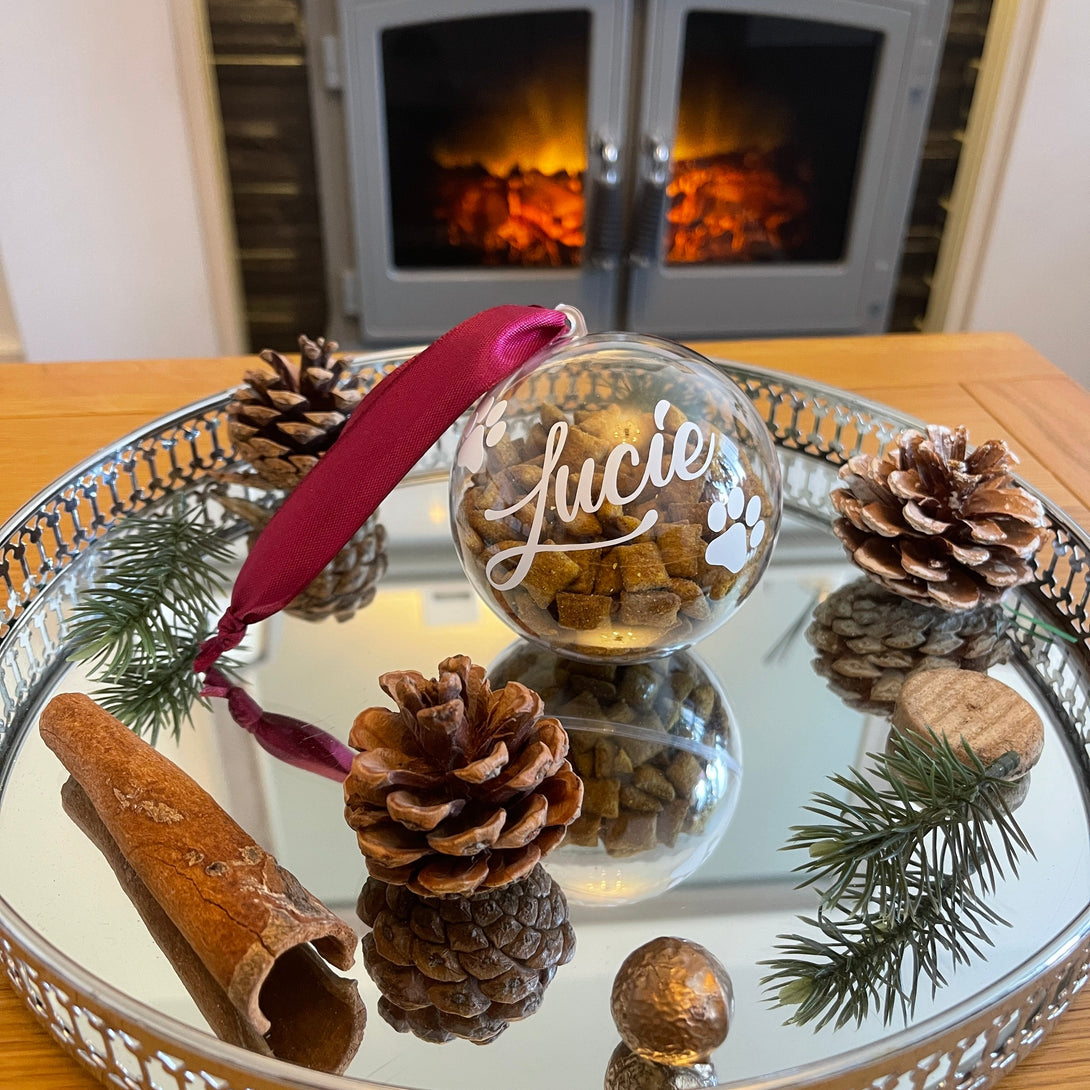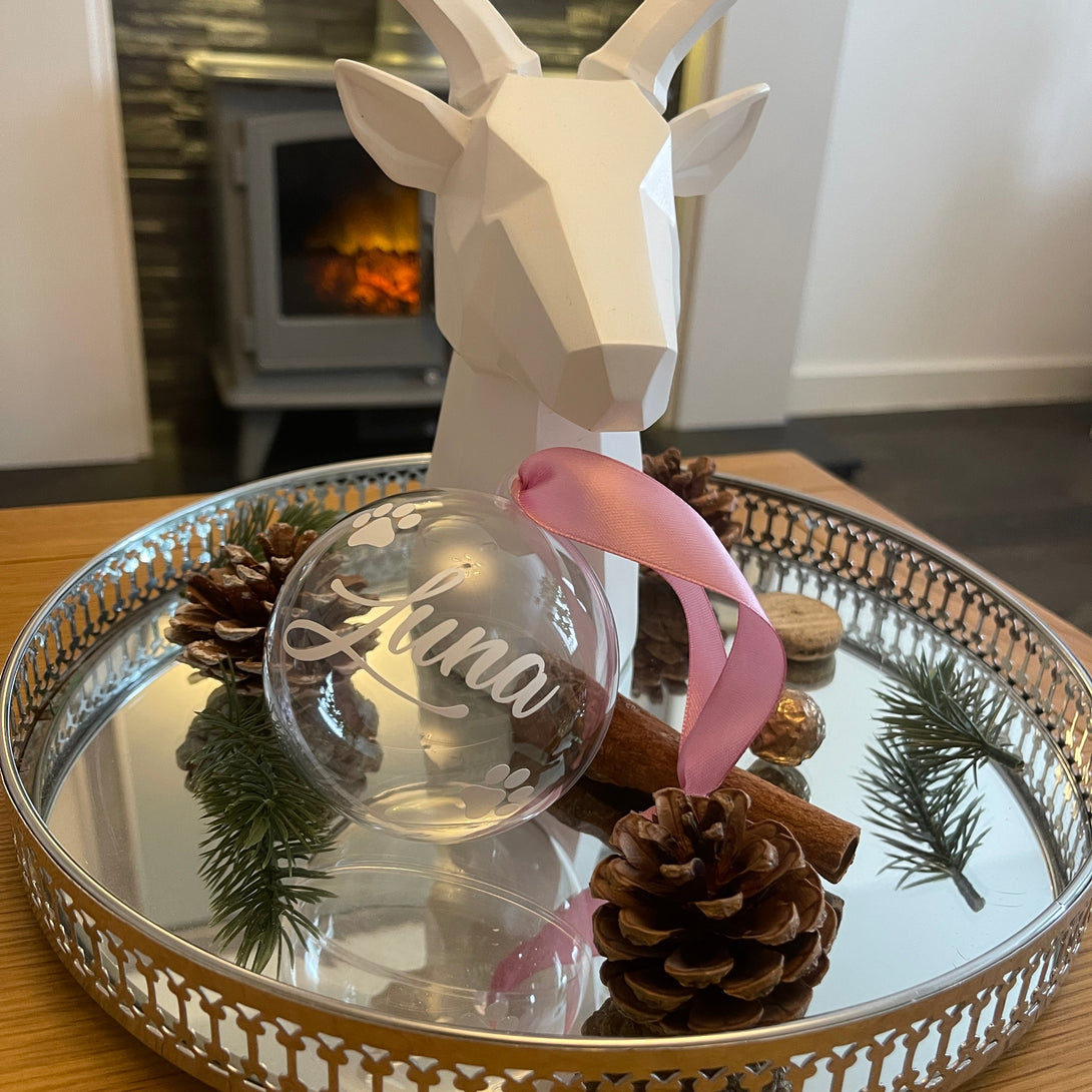 Pet Cat Paw Print Personalised Clear Feather Christmas Tree Hanging Decoration Bauble