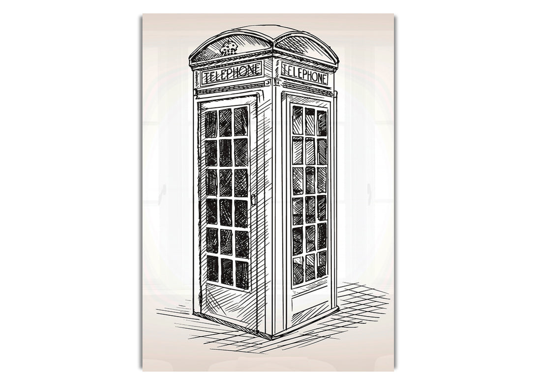 Acryldruck „Phone Box Outline“, UV-gedruckt auf 5 mm dickes Acrylglas. Wird mit allem geliefert, was Sie zum Aufhängen an Ihrer Wand benötigen.