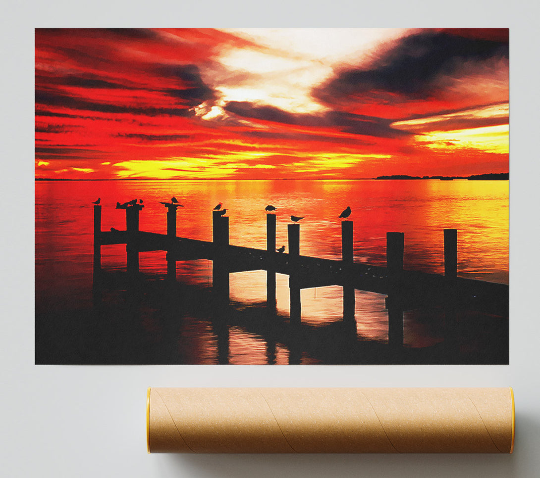 Our Pier Fire Sky Poster is printed 260 GSM premium lustre paper that offers vibrant colours and exceptional detail.