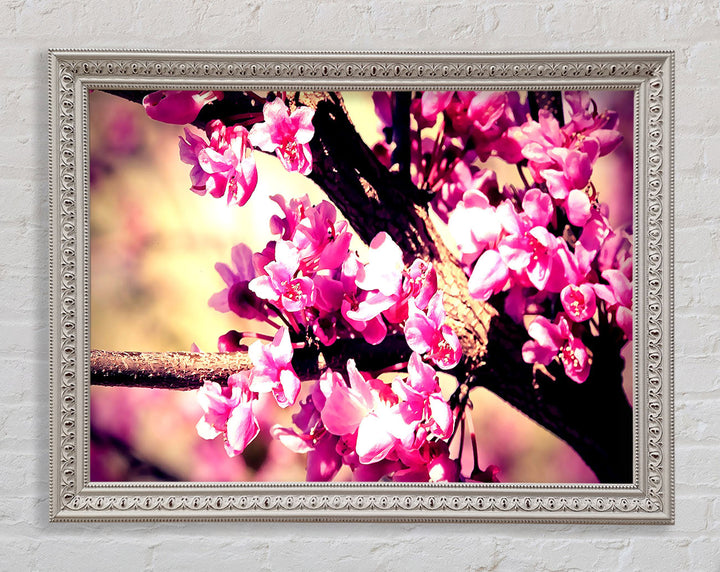 Gerahmter Druck „Pink Blossom“, erhältlich in mehreren Rahmenfarben. Fertig zum Aufhängen aus der Schachtel und handgefertigt im Vereinigten Königreich.