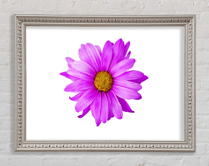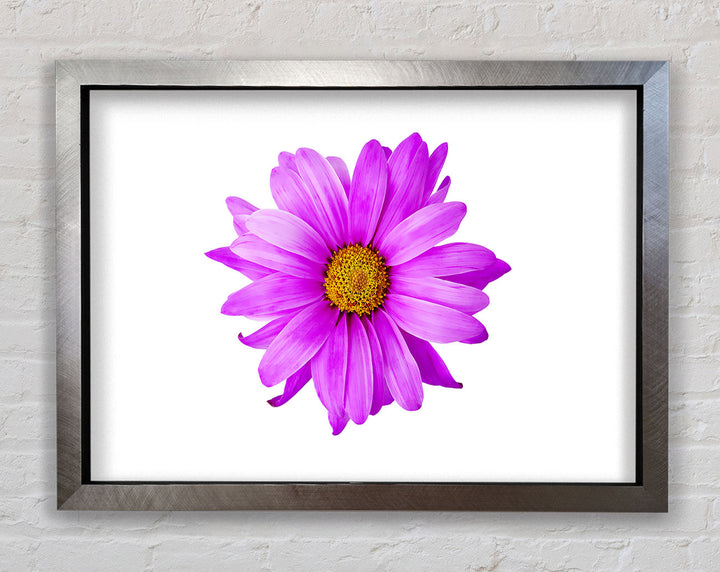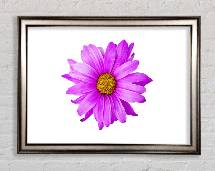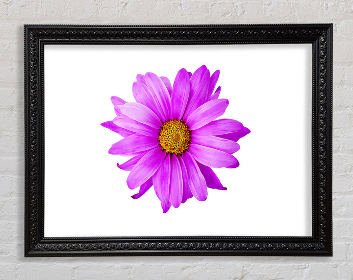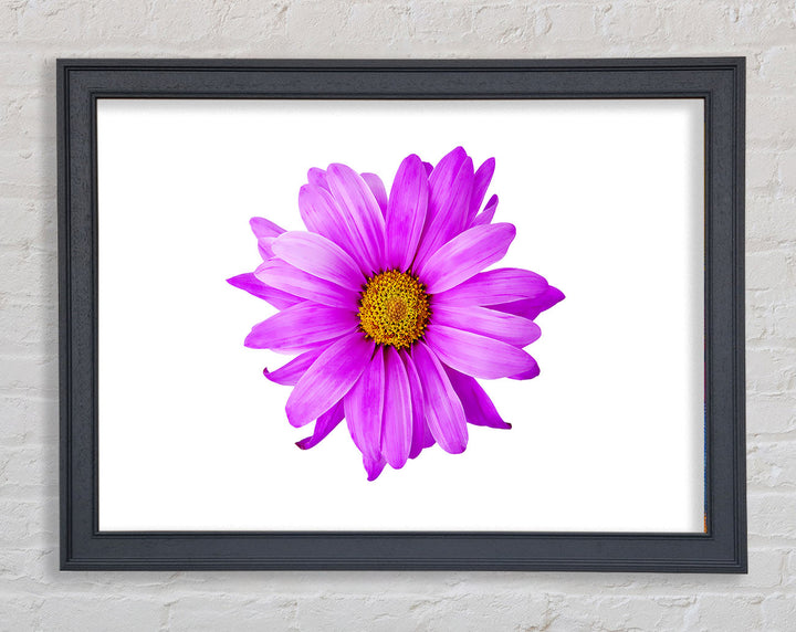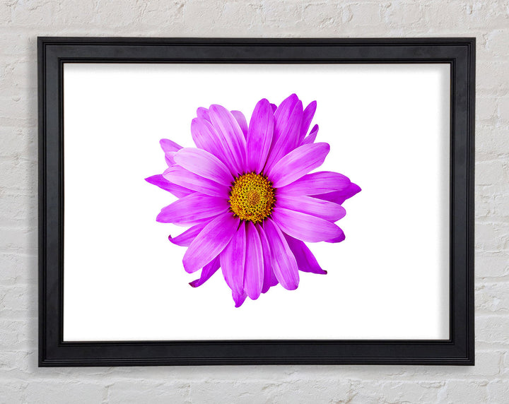 Gerahmter Druck „Pink Daisy On White“, erhältlich in mehreren Rahmenfarben. Fertig zum Aufhängen aus der Schachtel und handgefertigt im Vereinigten Königreich.
