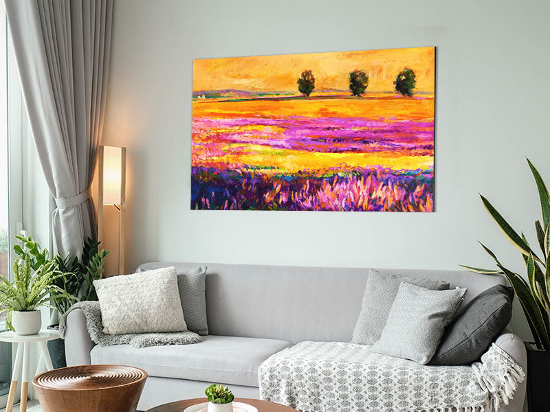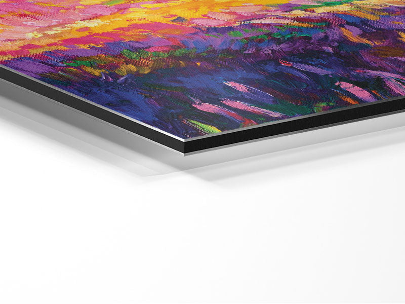 Pink Fields Of Gold Gedruckt auf gebürstetem Aluminium-Dibond. Eine moderne Art, Kunst zu präsentieren und leicht zu pflegen.