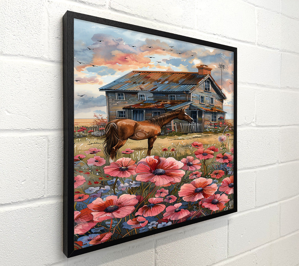 Pink Horse And Farmhouse