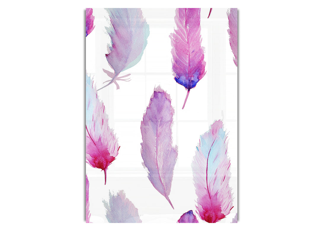 Acryldruck „Pink Indian Feathers 2“, UV-gedruckt auf 5 mm dickes Acrylglas. Wird mit allem geliefert, was Sie zum Aufhängen an die Wand brauchen.