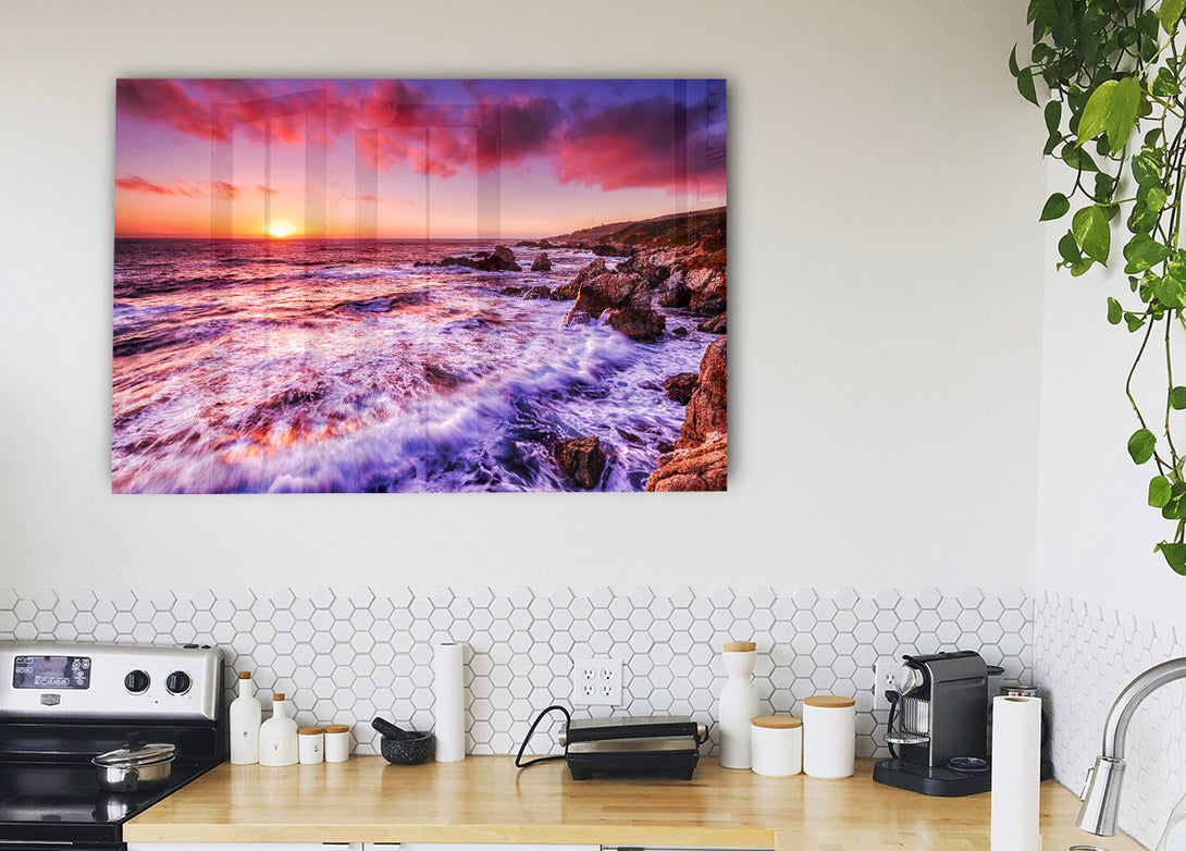 Acryldruck „Pink Ocean Waves“, UV-gedruckt auf 5 mm dickes Acrylglas. Wird mit allem geliefert, was Sie zum Aufhängen an die Wand brauchen.