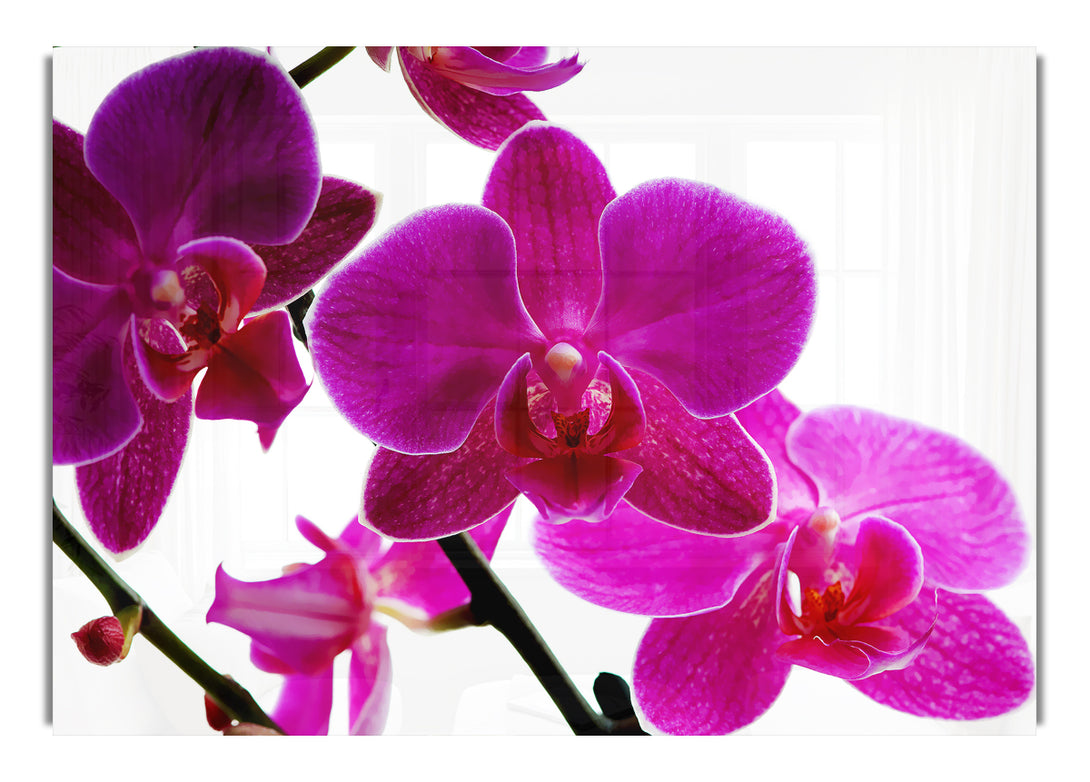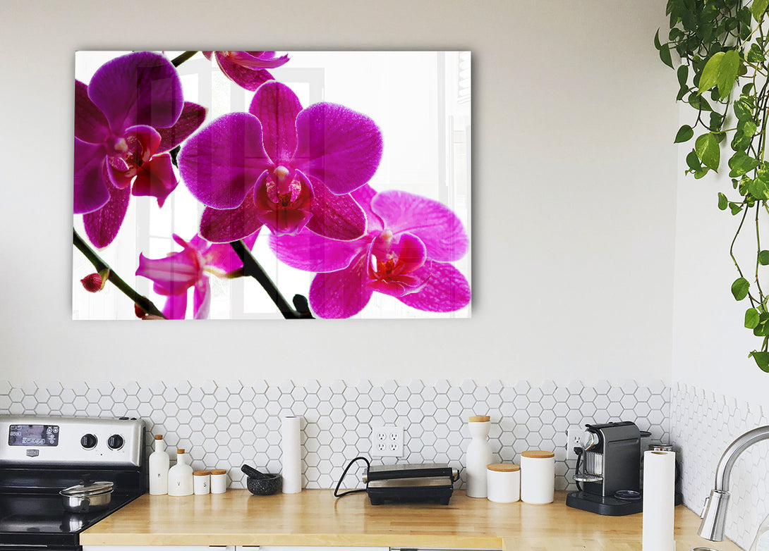 Acryldruck auf Leinwand mit rosa Orchideenblüten, UV-Druck auf 5 mm dickes Acrylglas. Wird mit allem geliefert, was Sie zum Aufhängen an die Wand benötigen.