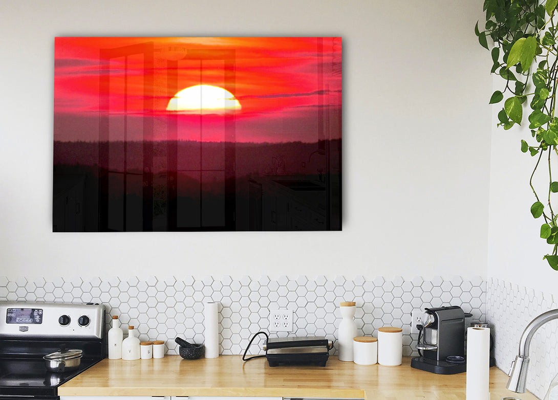 Acryldruck „Pink Sunset Glaze“, UV-gedruckt auf 5 mm dickes Acrylglas. Wird mit allem geliefert, was Sie zum Aufhängen an Ihrer Wand benötigen.