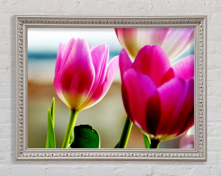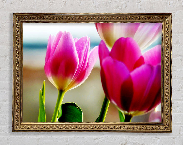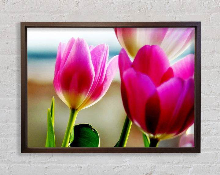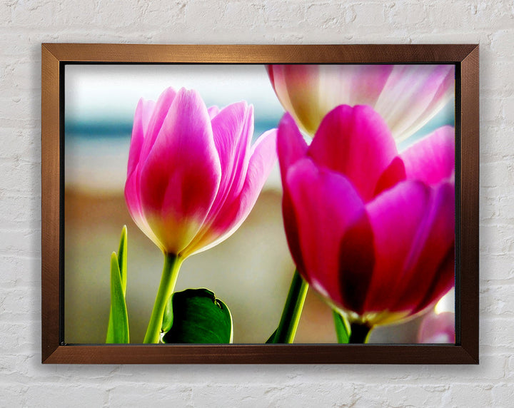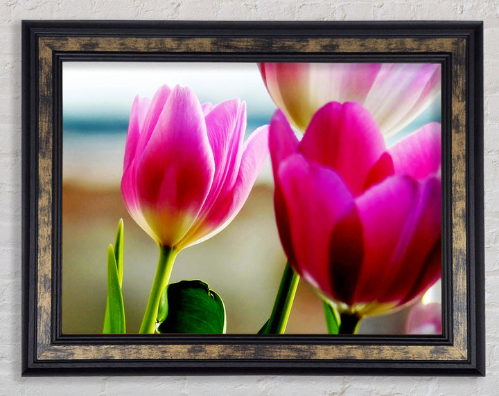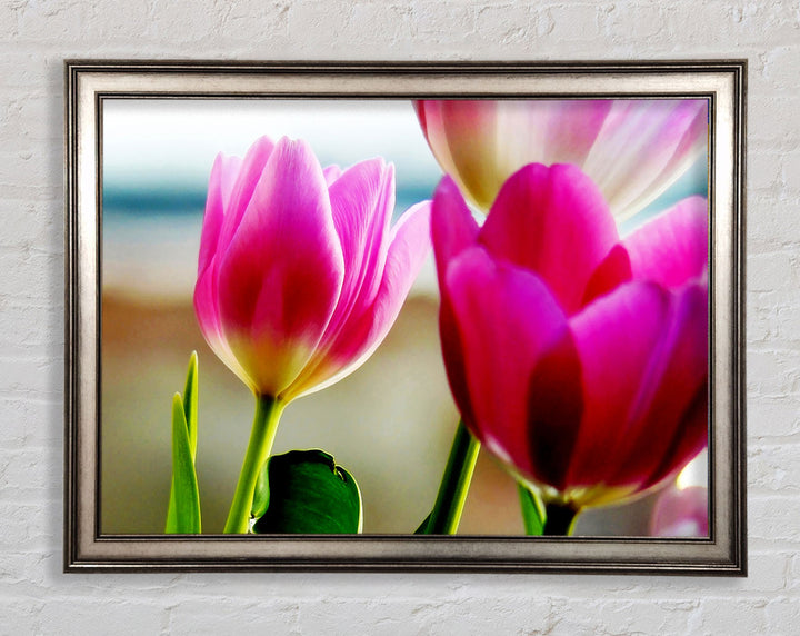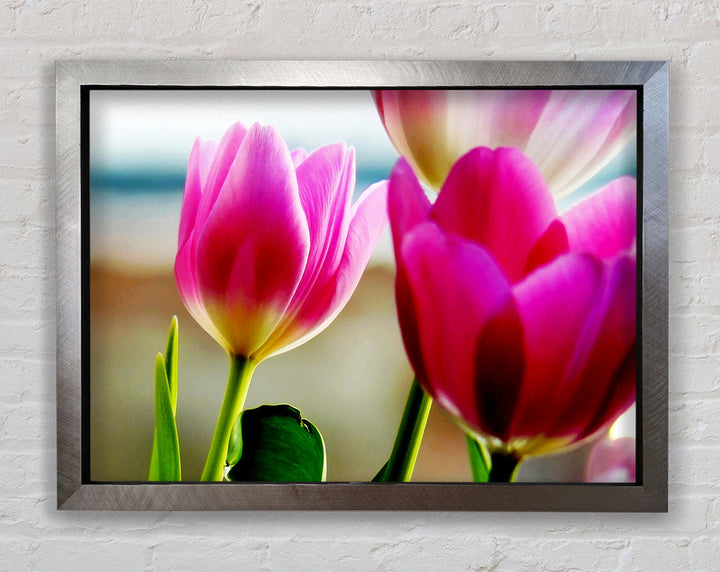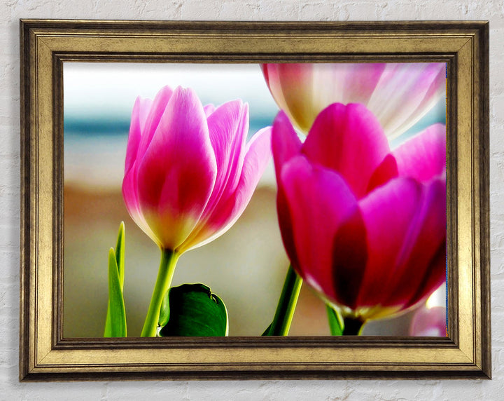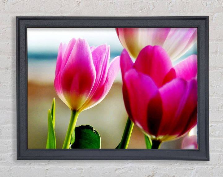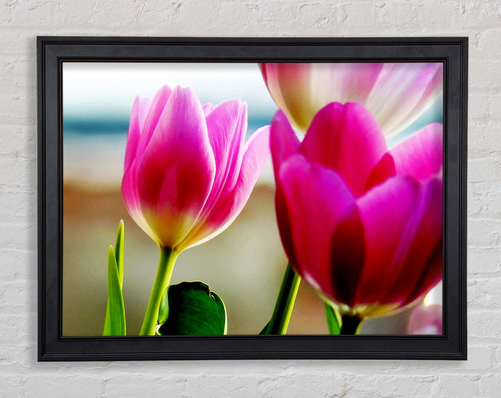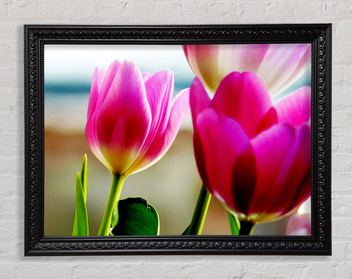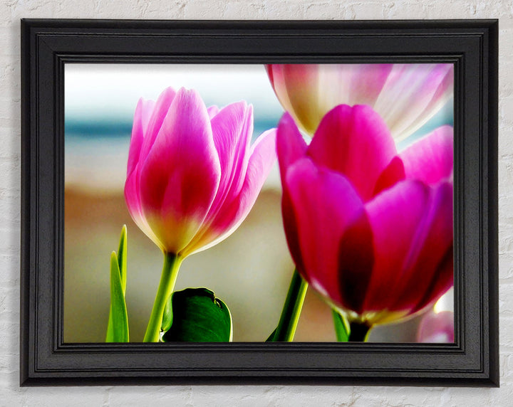 Gerahmter Druck „Pink Tulip Parade“, erhältlich in mehreren Rahmenfarben. Fertig zum Aufhängen aus der Schachtel und handgefertigt im Vereinigten Königreich.