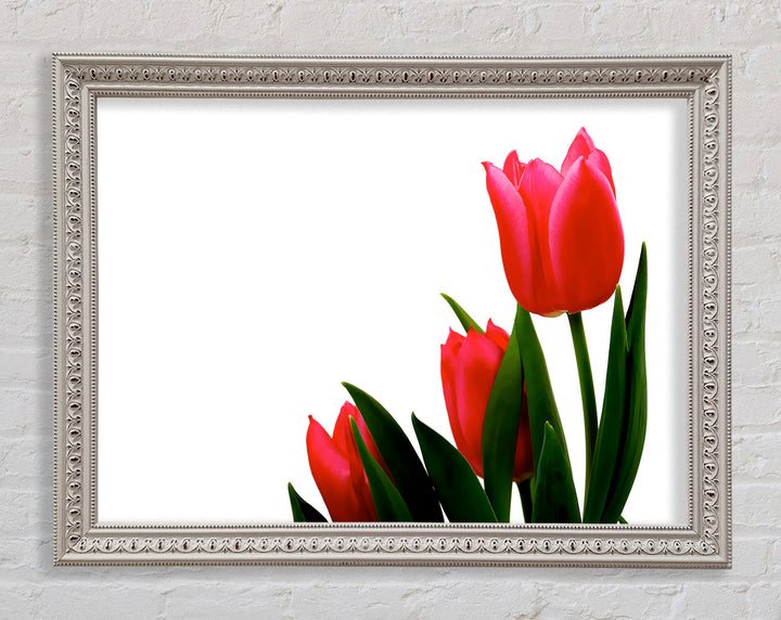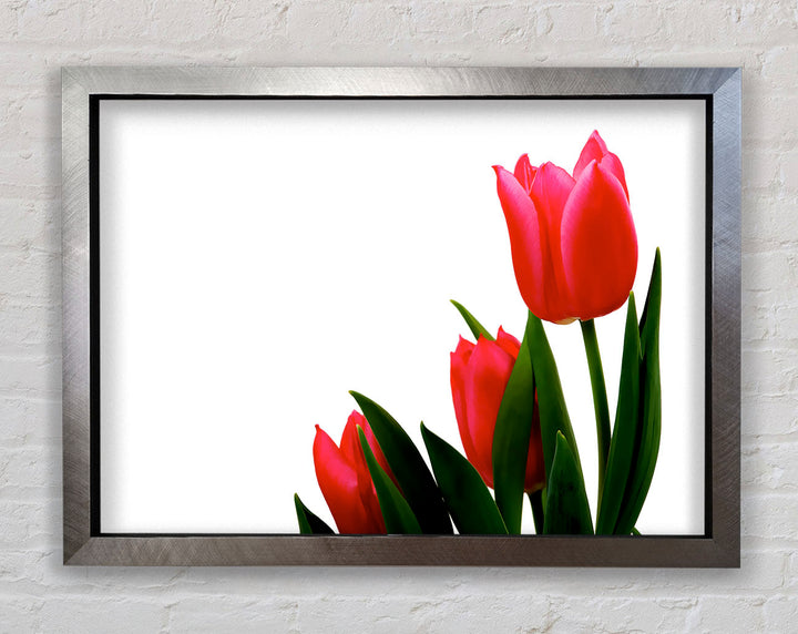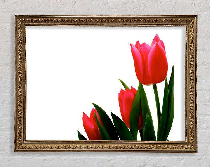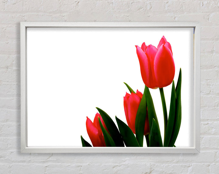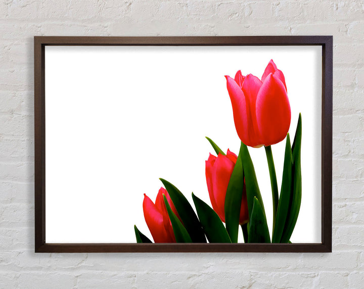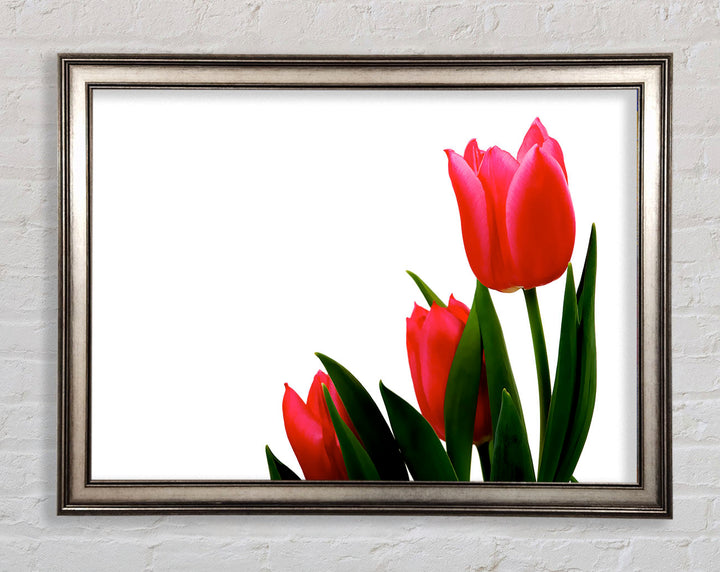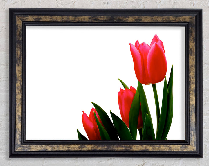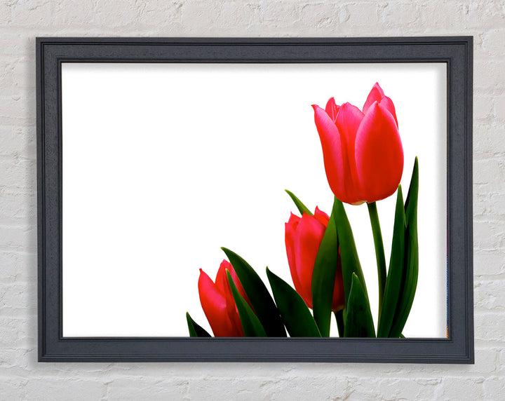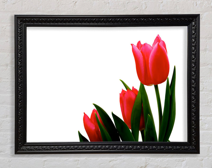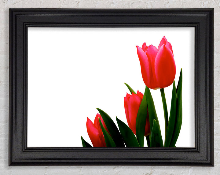 Gerahmter Druck „Pink Tulip Trio“, erhältlich in mehreren Rahmenfarben. Fertig zum Aufhängen aus der Schachtel und handgefertigt im Vereinigten Königreich.