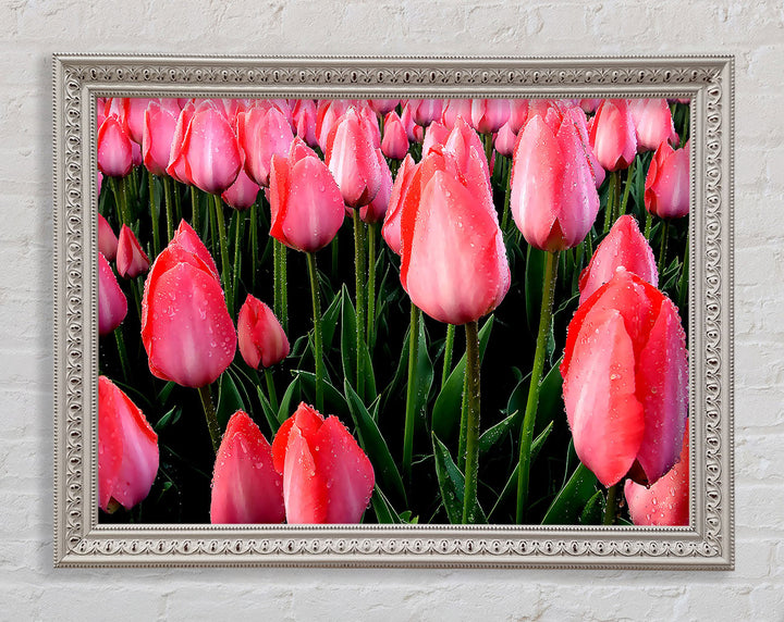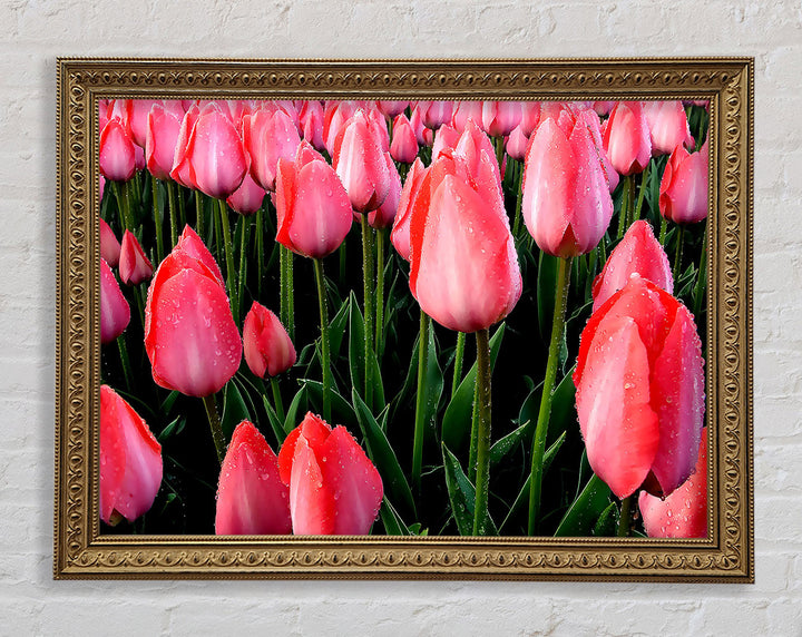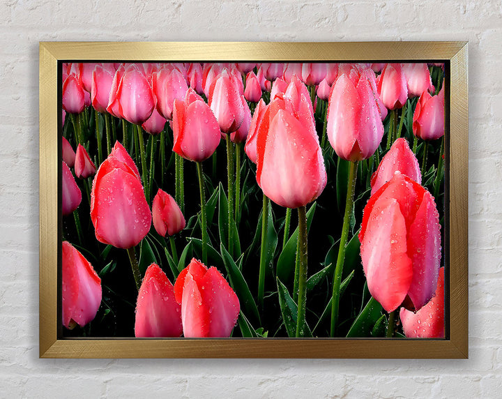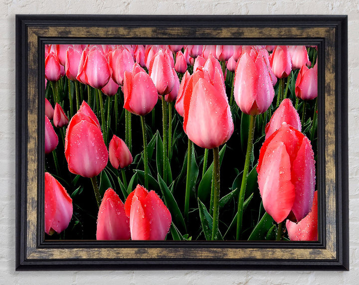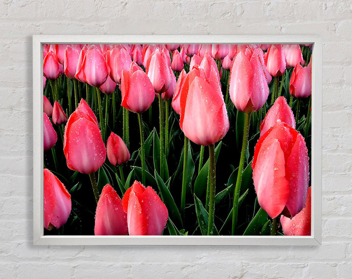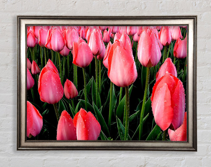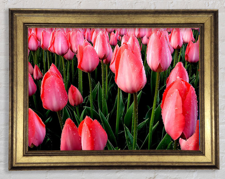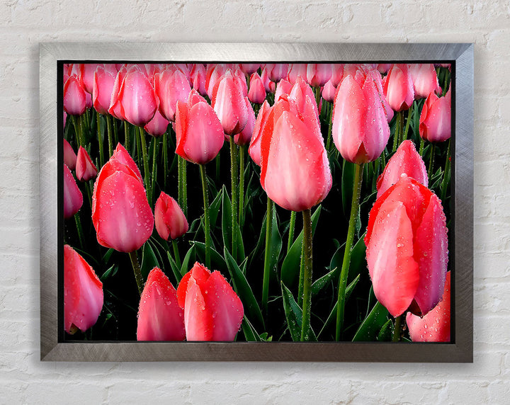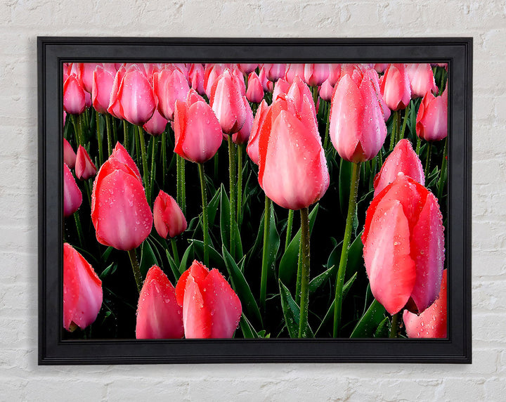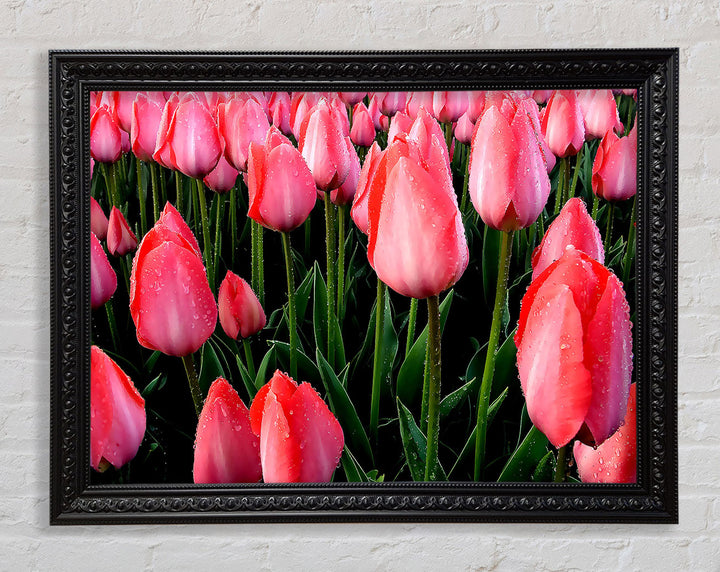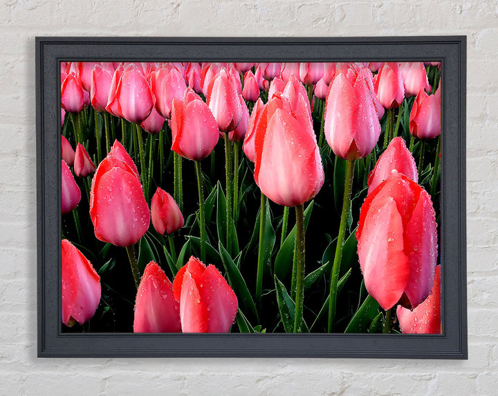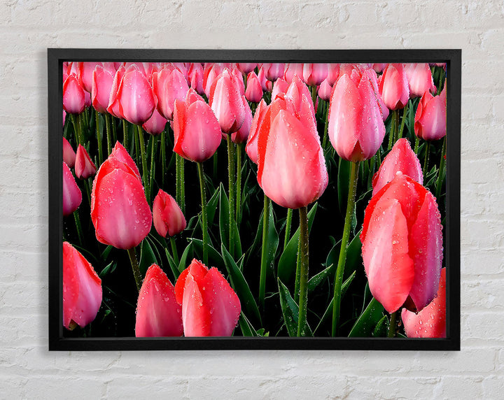 Gerahmter Druck „Pink Tulips Cultivation“, erhältlich in mehreren Rahmenfarben. Fertig zum Aufhängen aus der Schachtel und handgefertigt im Vereinigten Königreich.