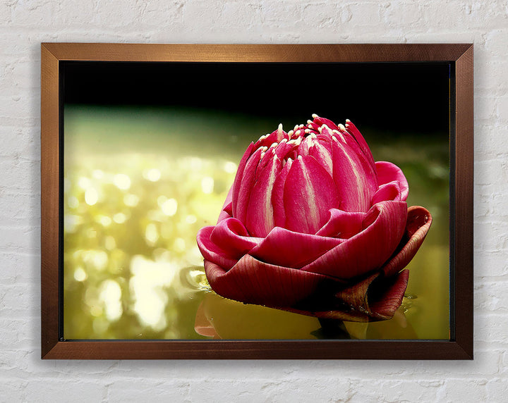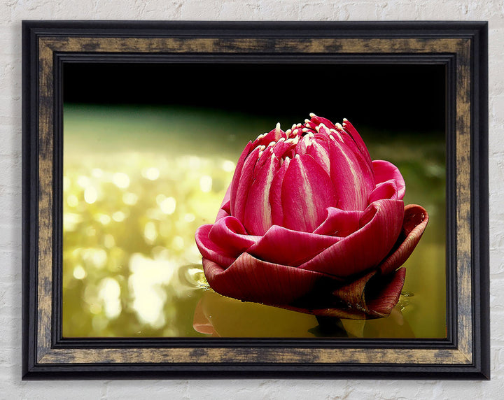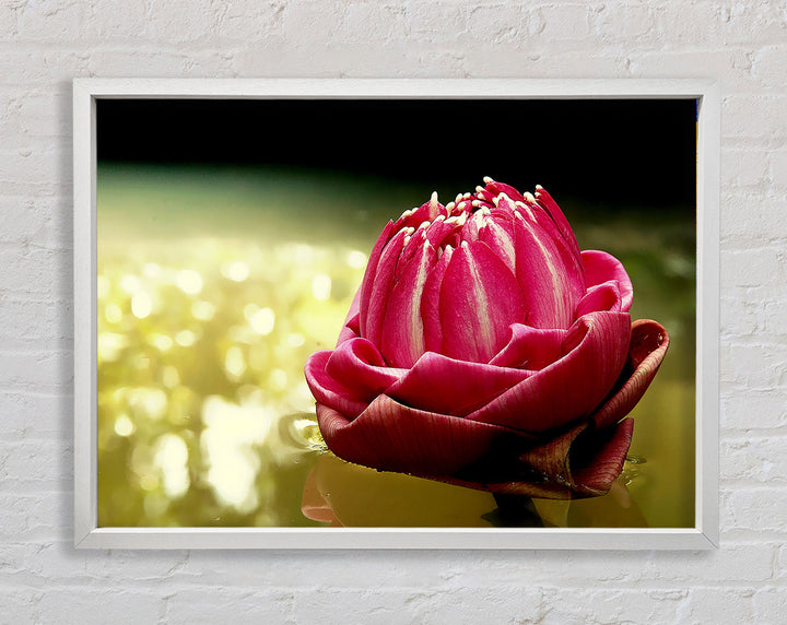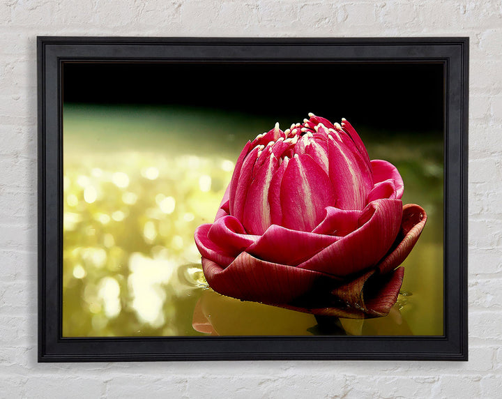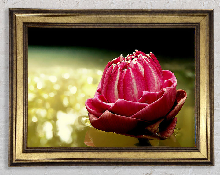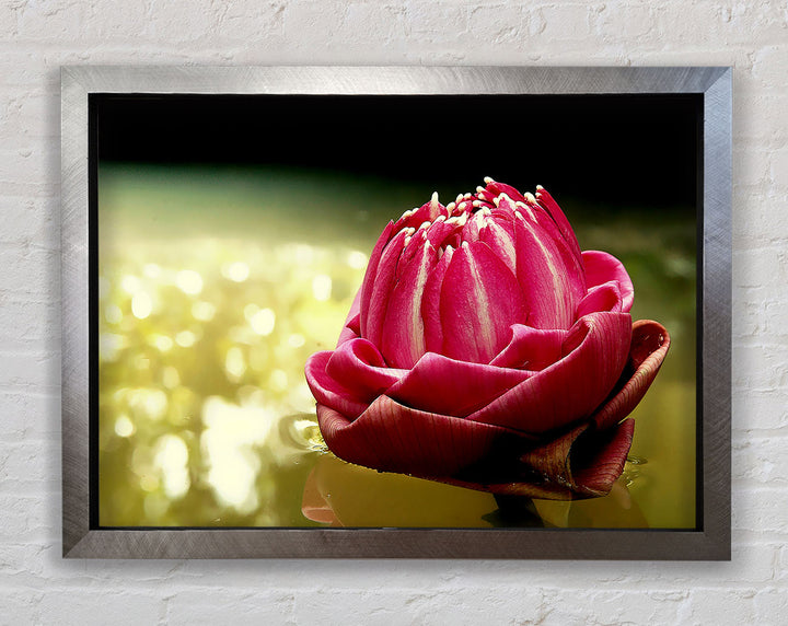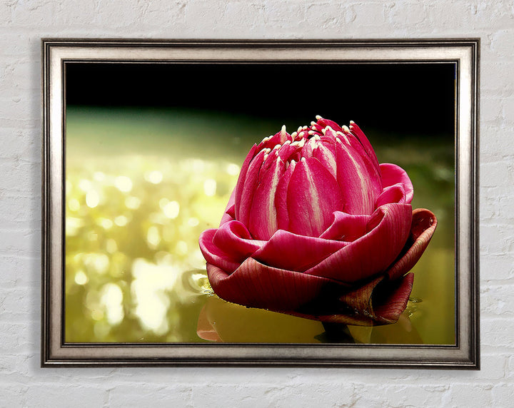 Gerahmter Druck „Pink Water Lily Sparkle“, erhältlich in mehreren Rahmenfarben. Fertig zum Aufhängen aus der Schachtel und handgefertigt im Vereinigten Königreich.