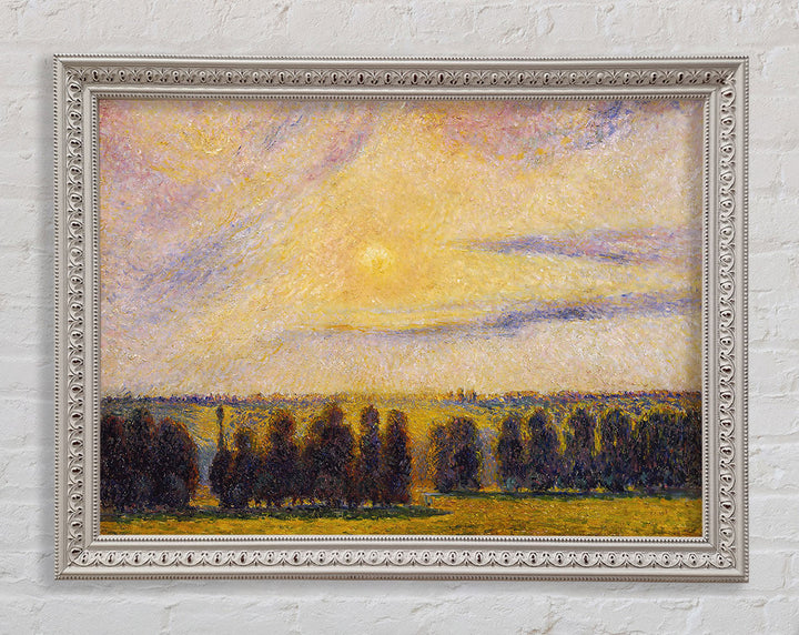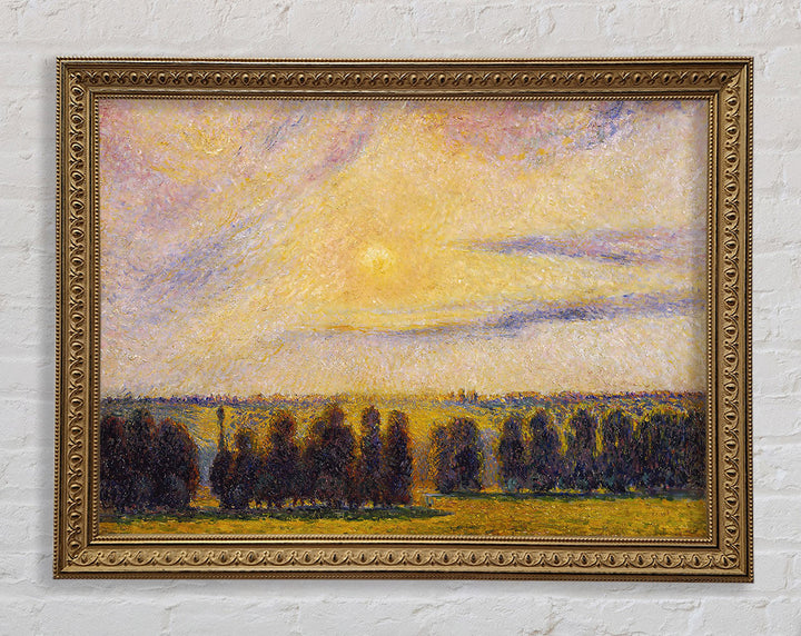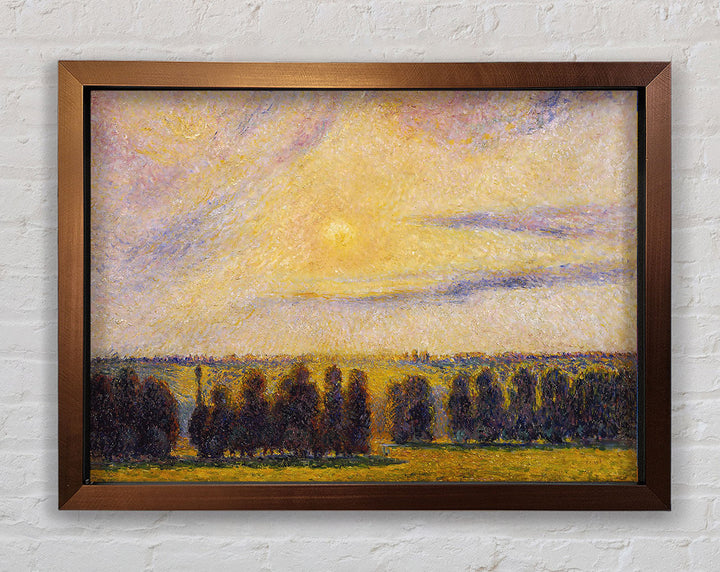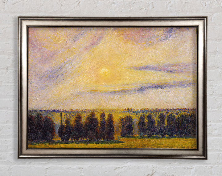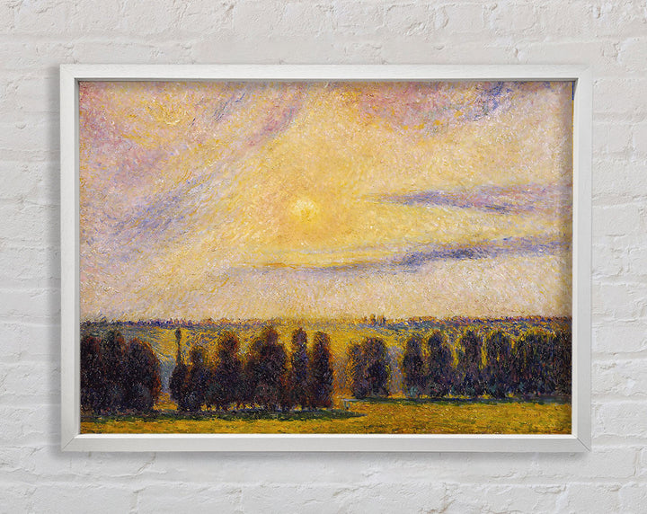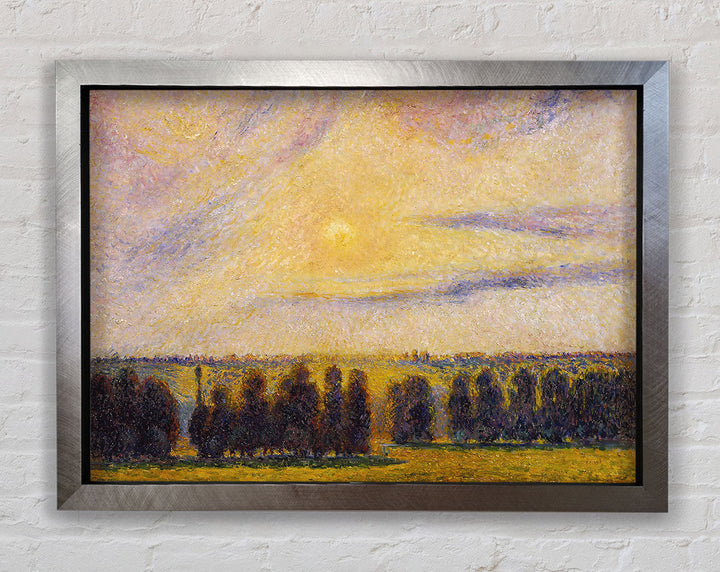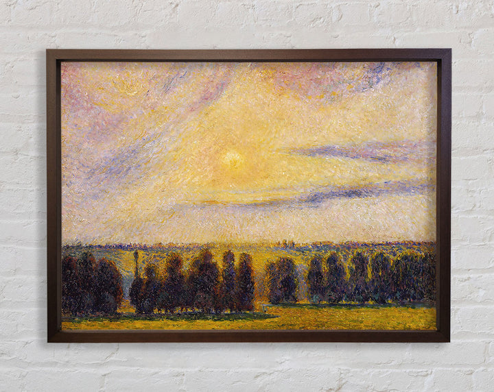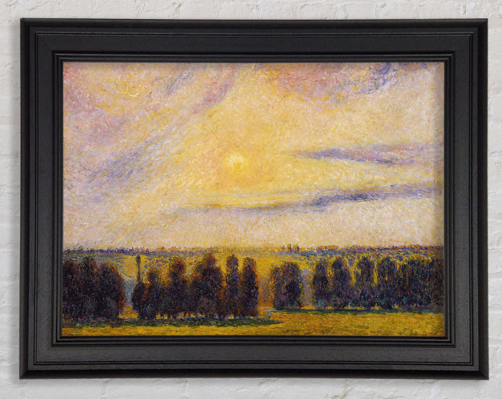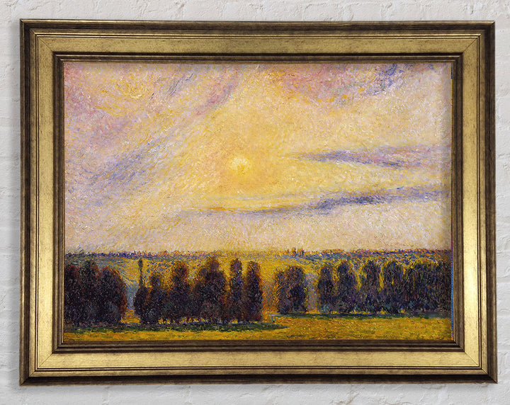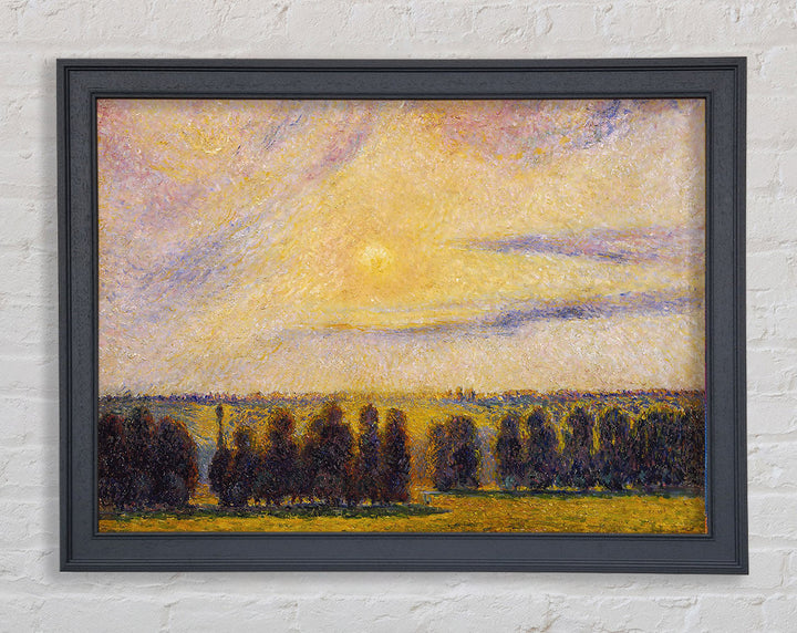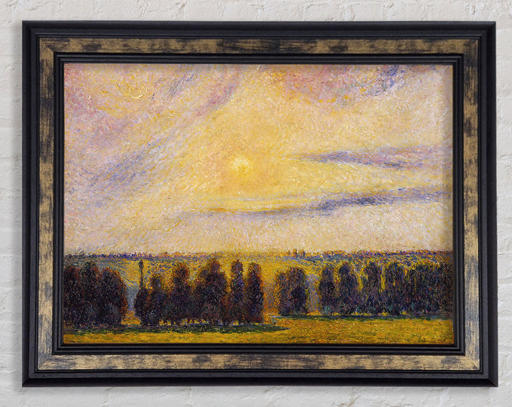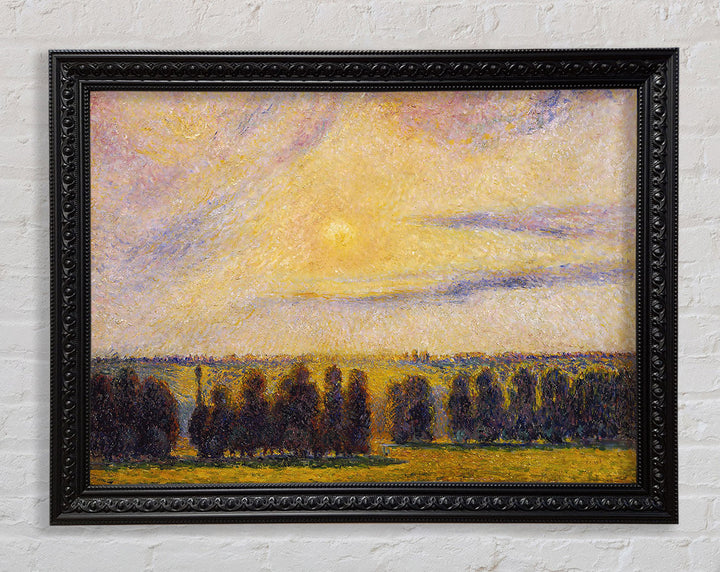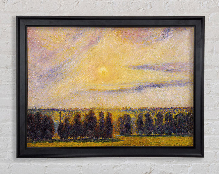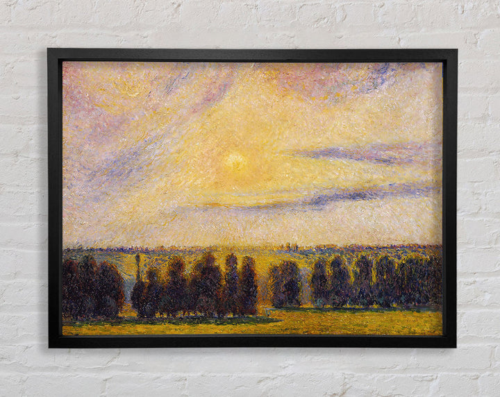 Gerahmter Druck „Sonnenuntergang bei Eragny“ von Pissarro, erhältlich in mehreren Rahmenfarben. Fertig zum Aufhängen aus der Schachtel und handgefertigt im Vereinigten Königreich.