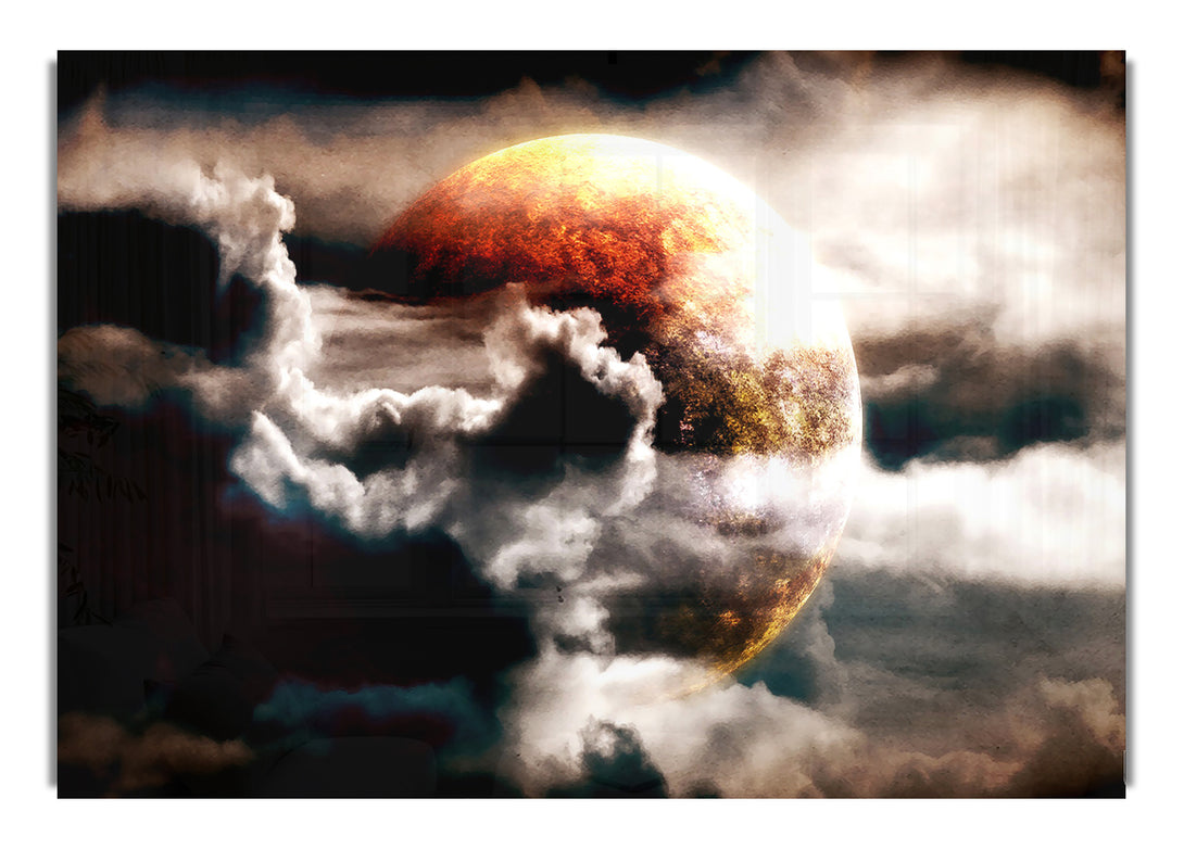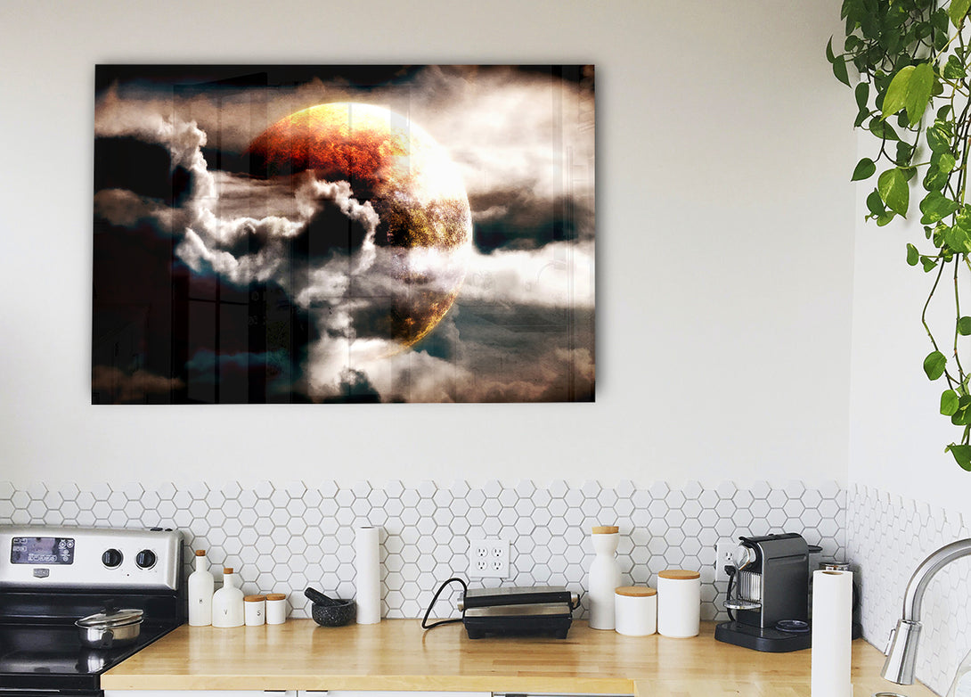 Acryldruck „Planet In The Clouds“, UV-Druck auf 5 mm dickes Acrylglas. Wird mit allem geliefert, was Sie zum Aufhängen an die Wand benötigen.