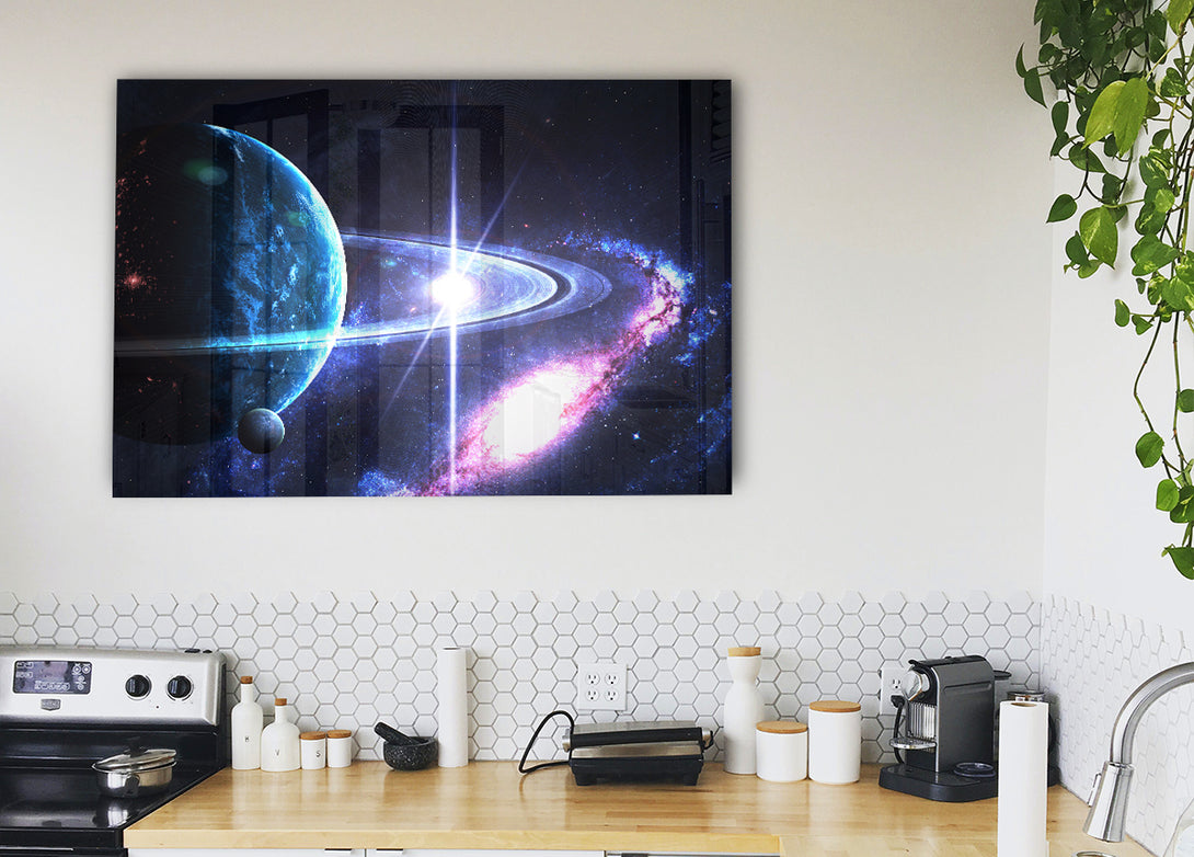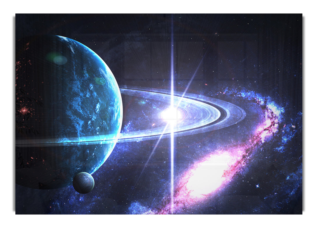 Planetenringe im Weltraum-Acryldruck, UV-gedruckt auf 5 mm dickes Acrylglas. Wird mit allem geliefert, was Sie zum Aufhängen an Ihre Wand benötigen.