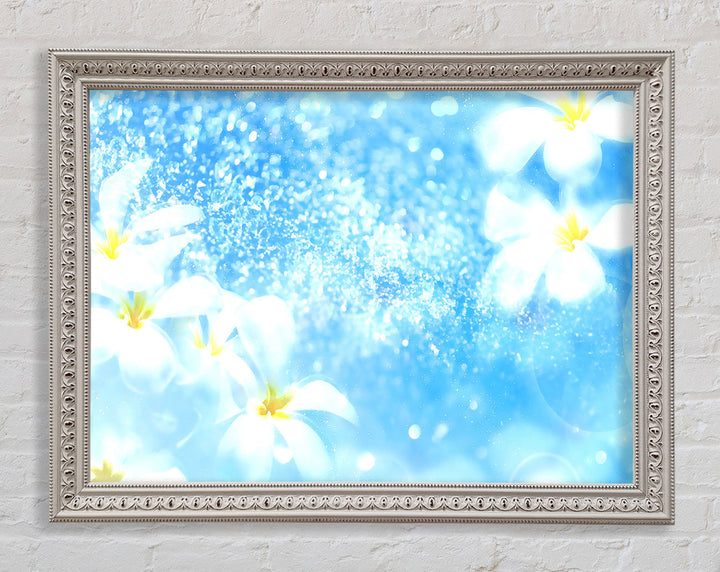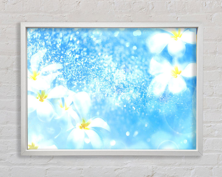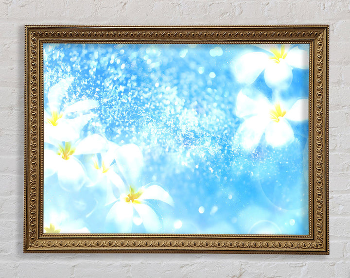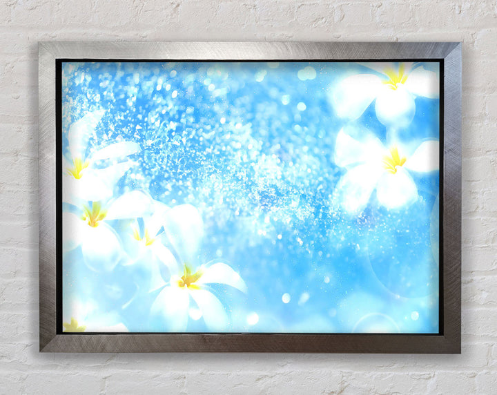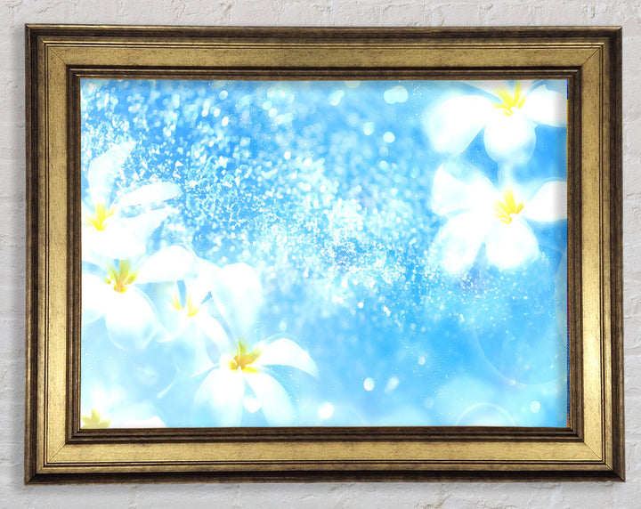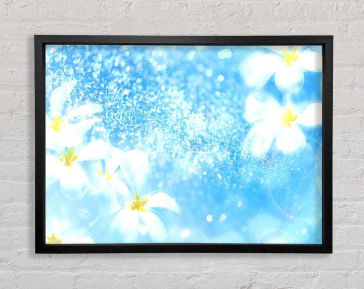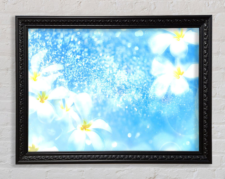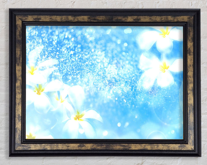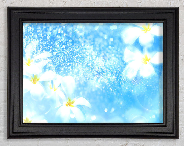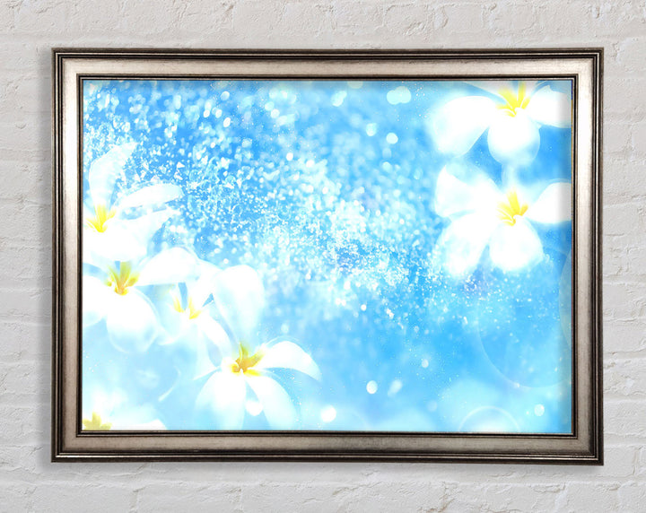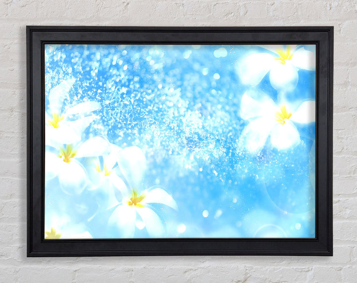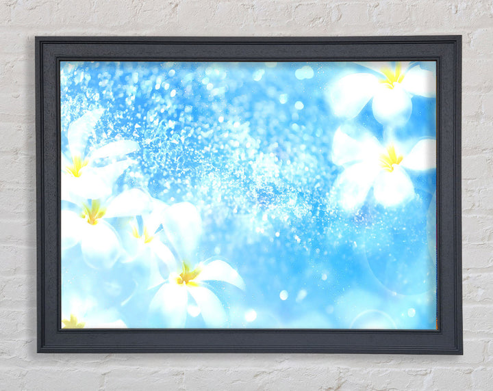 Gerahmter Druck in Plumeria Blue, erhältlich in mehreren Rahmenfarben. Fertig zum Aufhängen aus der Schachtel und handgefertigt im Vereinigten Königreich.