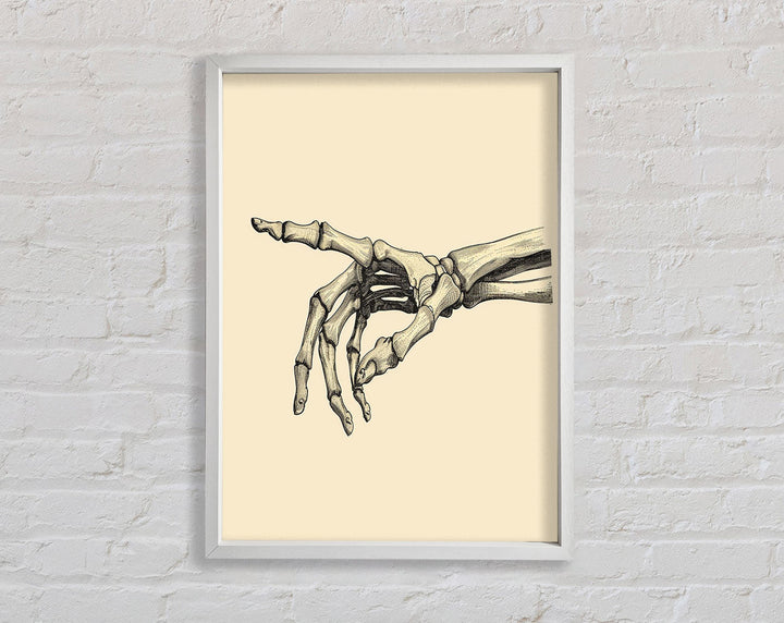 Add a touch of unique style to your space with the Point The Finger Bones Framed Print. This striking piece of framed art is perfect for any room in your home or office. Available in six different sizes, from small to oversized, it fits any wall perfectly. Choose from a variety of colors to match your decor, ensuring it complements your style. Each print is handmade in the United Kingdom, guaranteeing high quality and craftsmanship. Ready to hang, this framed art makes decorating easy and hassle-free. Elevate your interior design with this distinctive and eye-catching artwork today.