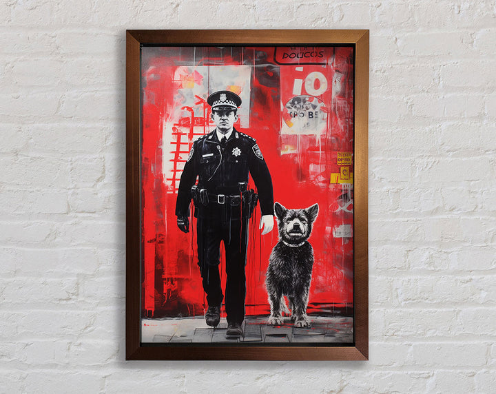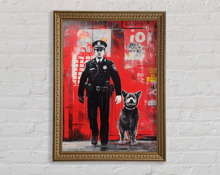 Introducing the Policeman K-9 Dog Framed Print, the perfect piece of framed art to add character and charm to any room. This stunning artwork features a brave police dog, capturing the essence of loyalty and strength. Available in six sizes, from small to oversized, it suits any space, large or small. Choose from a variety of colors to match your décor seamlessly.