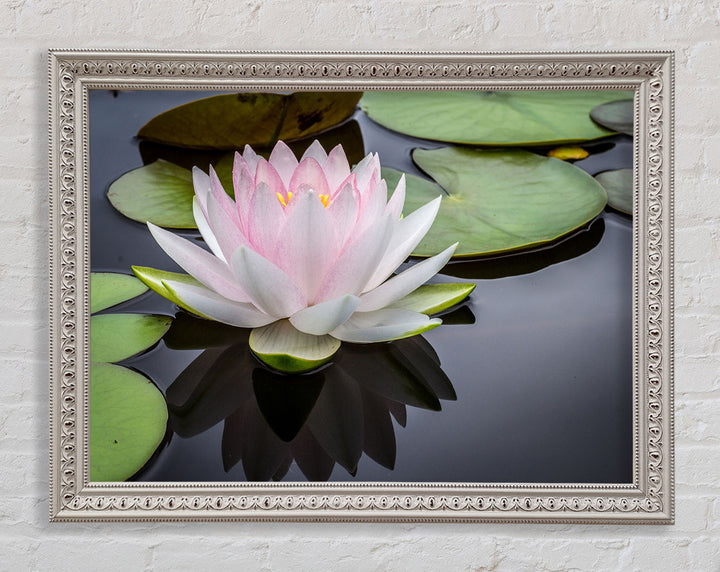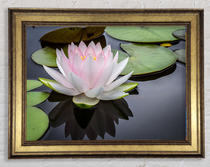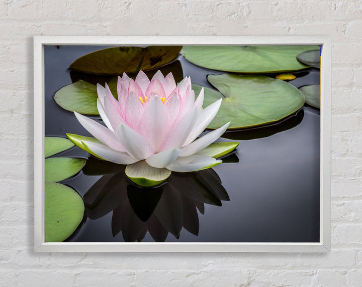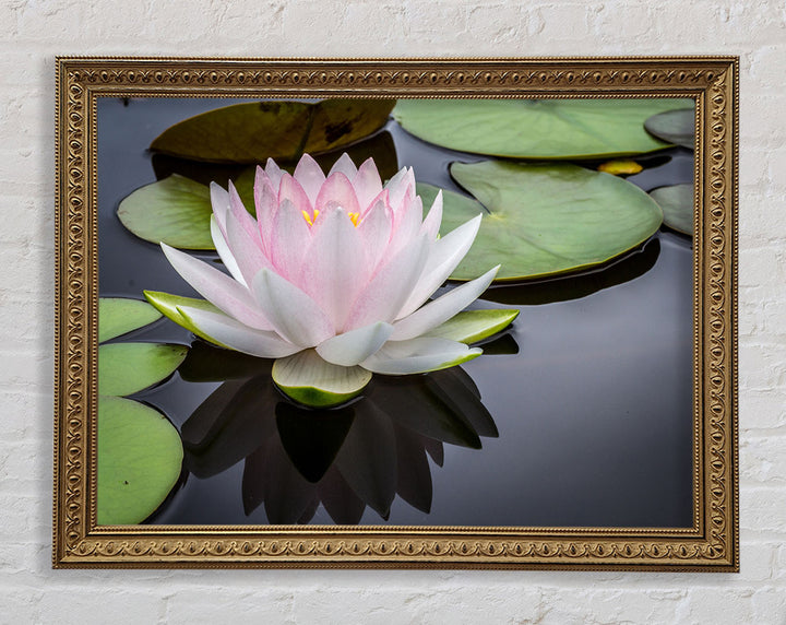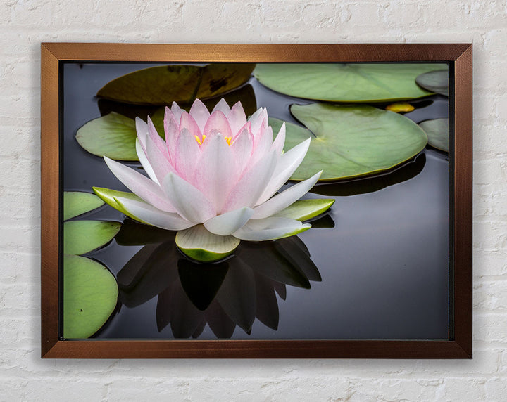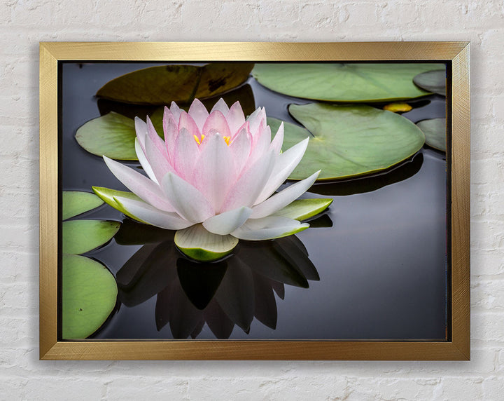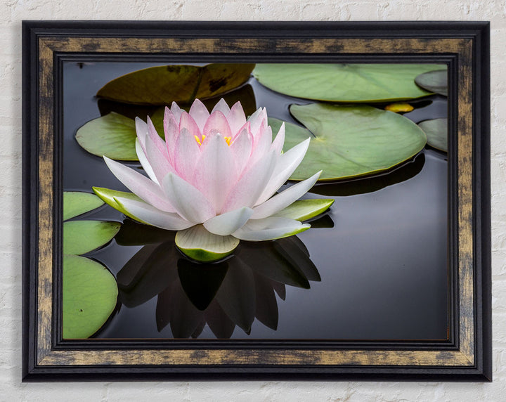 Gerahmter Druck mit Teichpflanze, die auf dem See schwimmt, in mehreren Rahmenfarben erhältlich. Fertig zum Aufhängen aus der Schachtel und handgefertigt im Vereinigten Königreich.