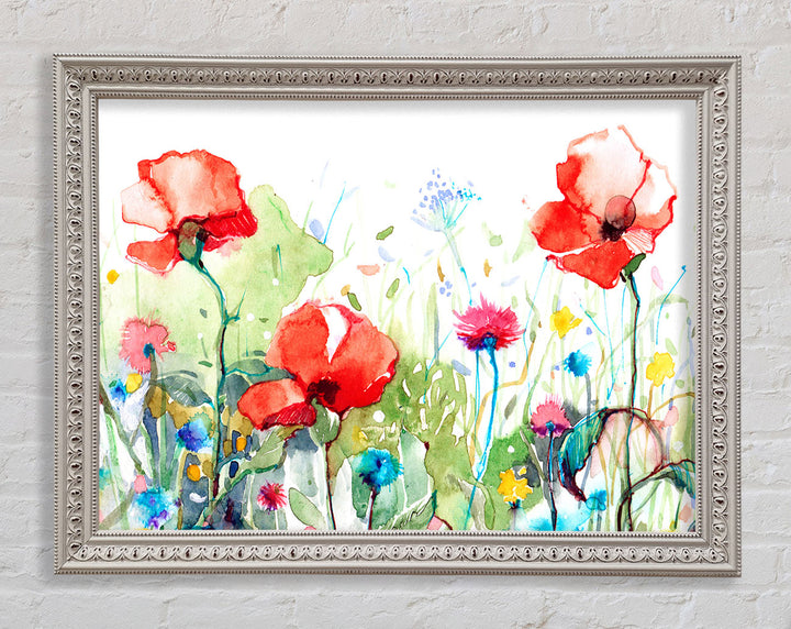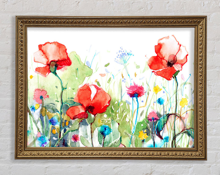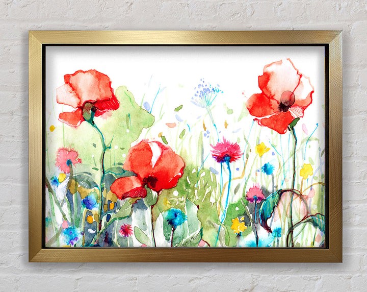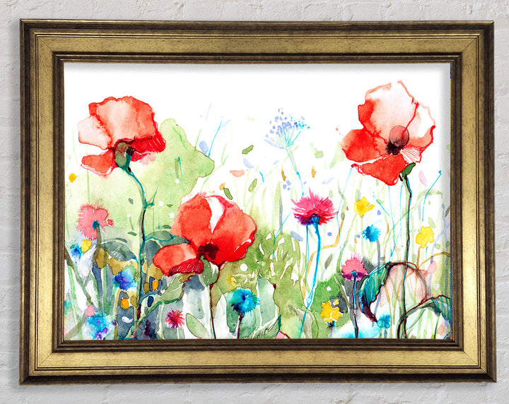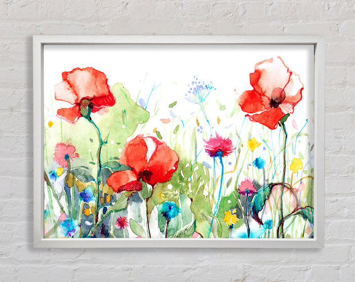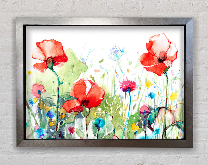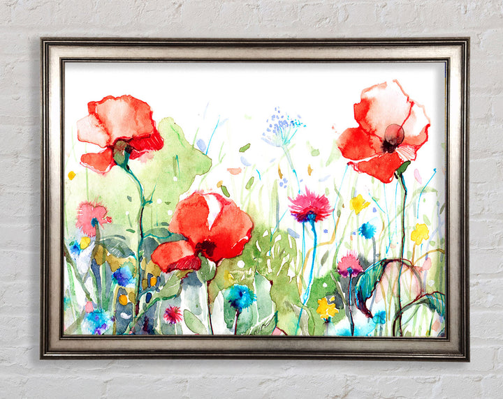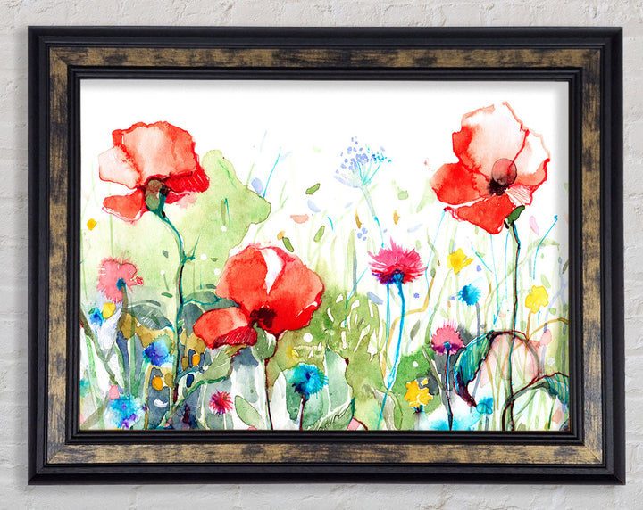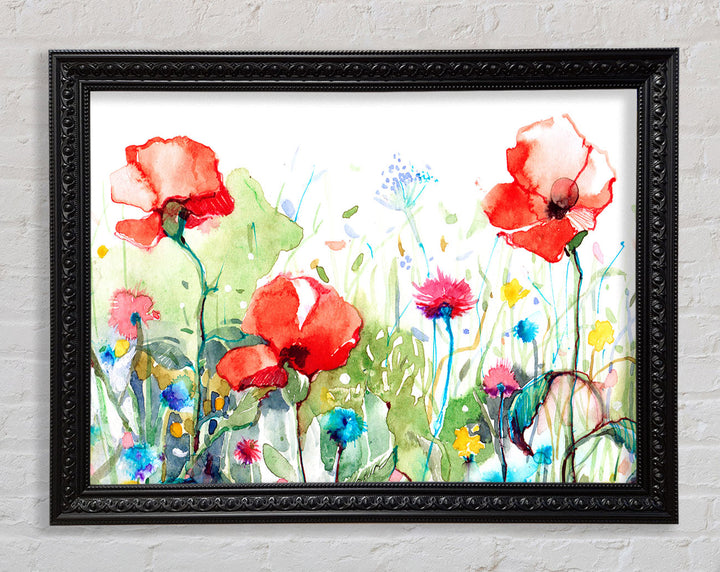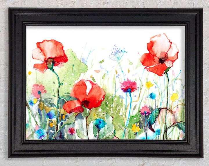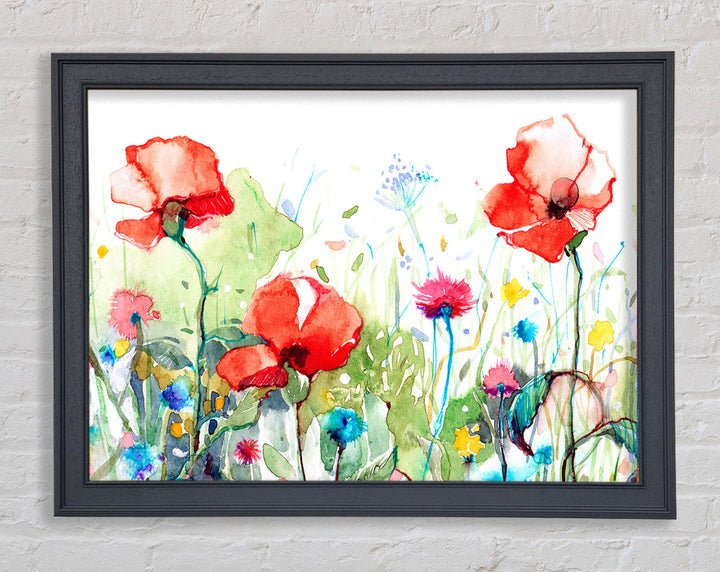Gerahmter Druck „Mohnblumen und gemischte Blumen“, erhältlich in mehreren Rahmenfarben. Fertig zum Aufhängen aus der Schachtel und handgefertigt im Vereinigten Königreich.
