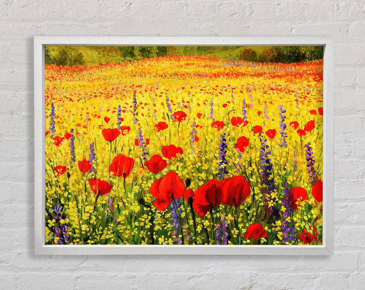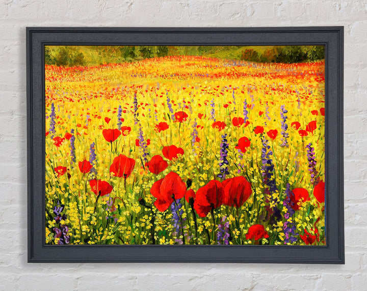 Gerahmter Druck „Poppy And Larkspur Magic“, erhältlich in mehreren Rahmenfarben. Fertig zum Aufhängen aus der Schachtel und handgefertigt im Vereinigten Königreich.