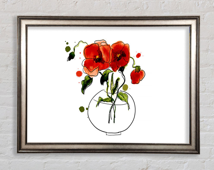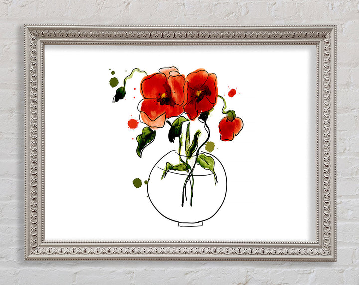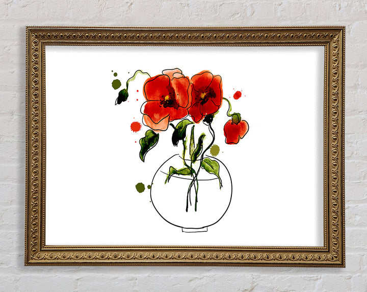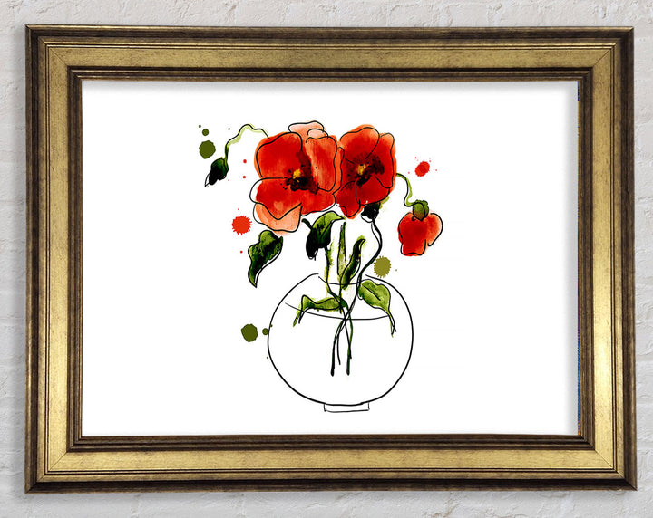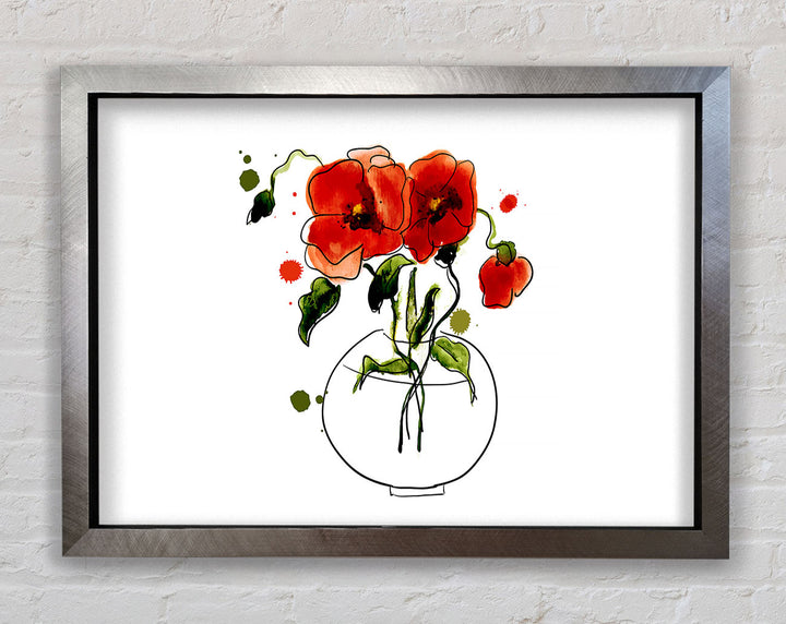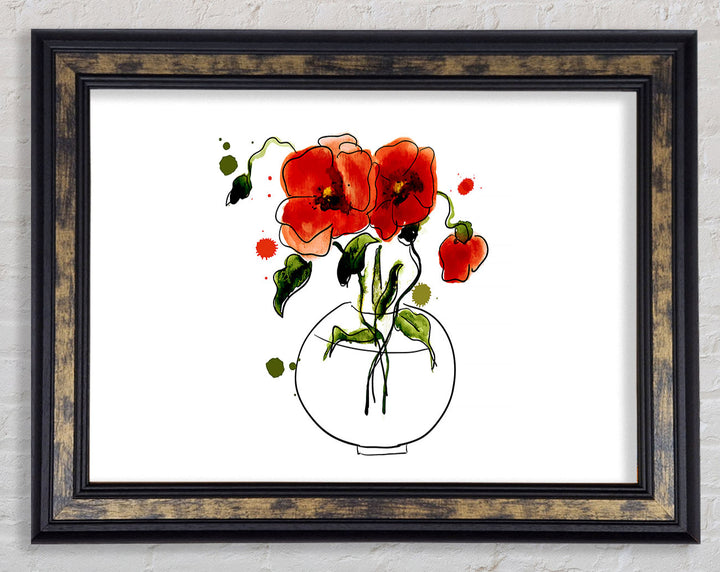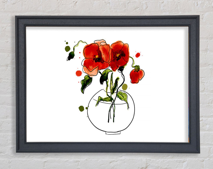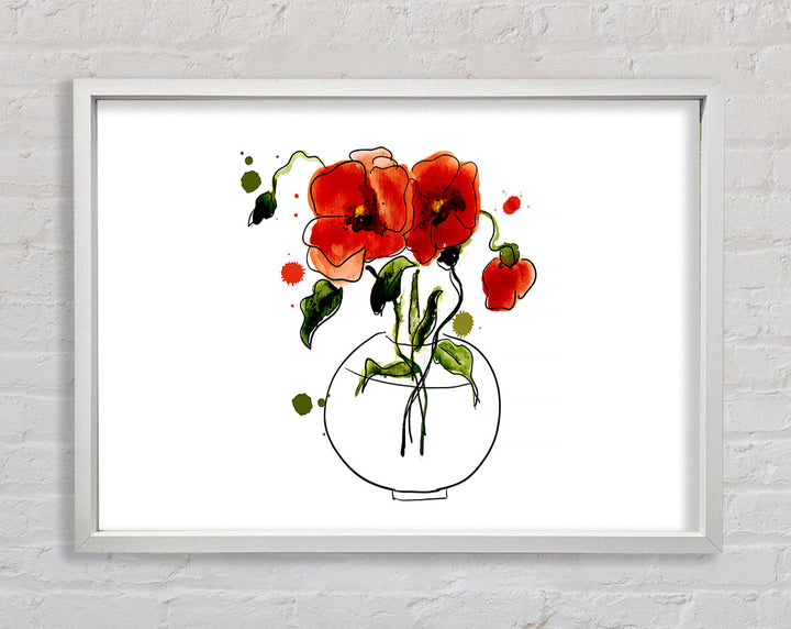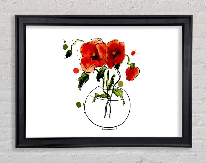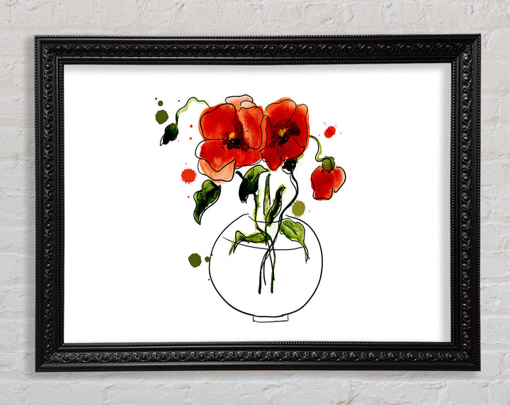 Gerahmter Druck „Poppy Vase“, erhältlich in mehreren Rahmenfarben. Fertig zum Aufhängen aus der Schachtel und handgefertigt im Vereinigten Königreich.