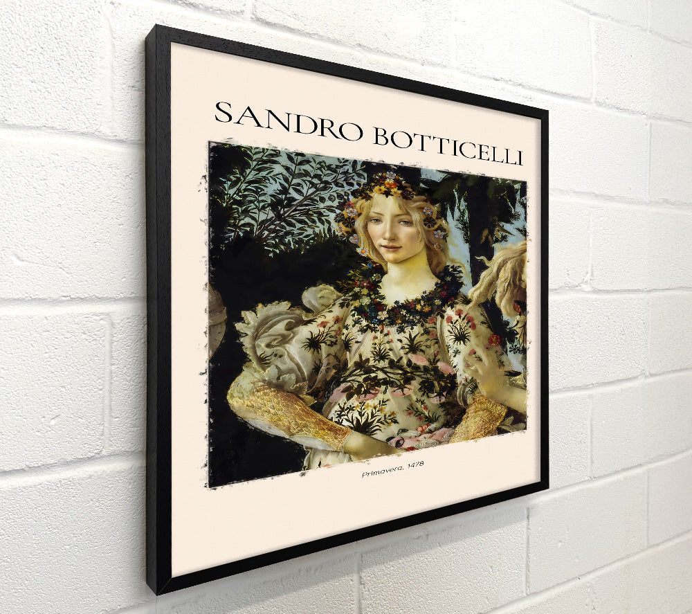 Primavera, 1478 von Sandro Botticelli, quadratische Leinwand, gedruckt auf beschichteter Polyester-Leinwand. Auf einem 44 mm großen Kastenrahmen montiert, fertig zum Aufhängen.